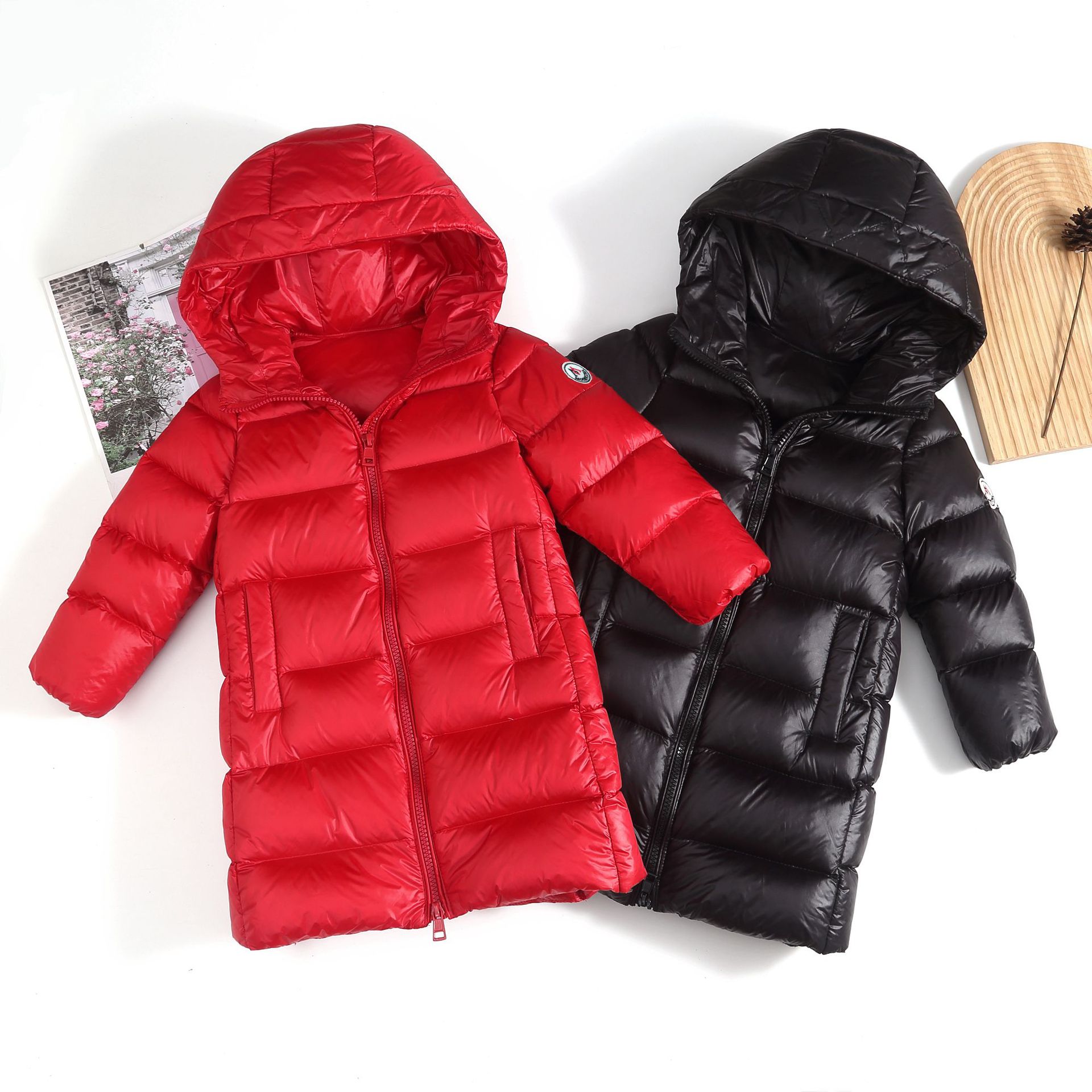 겨울 소년 소녀 초경량 아동복 소녀 한국 스타일 코트 어린이 중간 길이 가을, 겨울 다운 재킷 경량스토어 가기