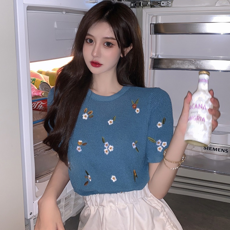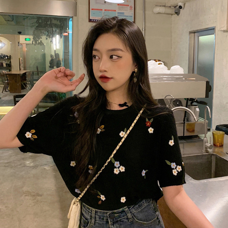 여성용 블랙 반팔 티셔츠 2025년 여름 신상 현아 스타일 루즈핏 디자인 패셔너블 니트 상의 인스타 트렌드스토어 가기