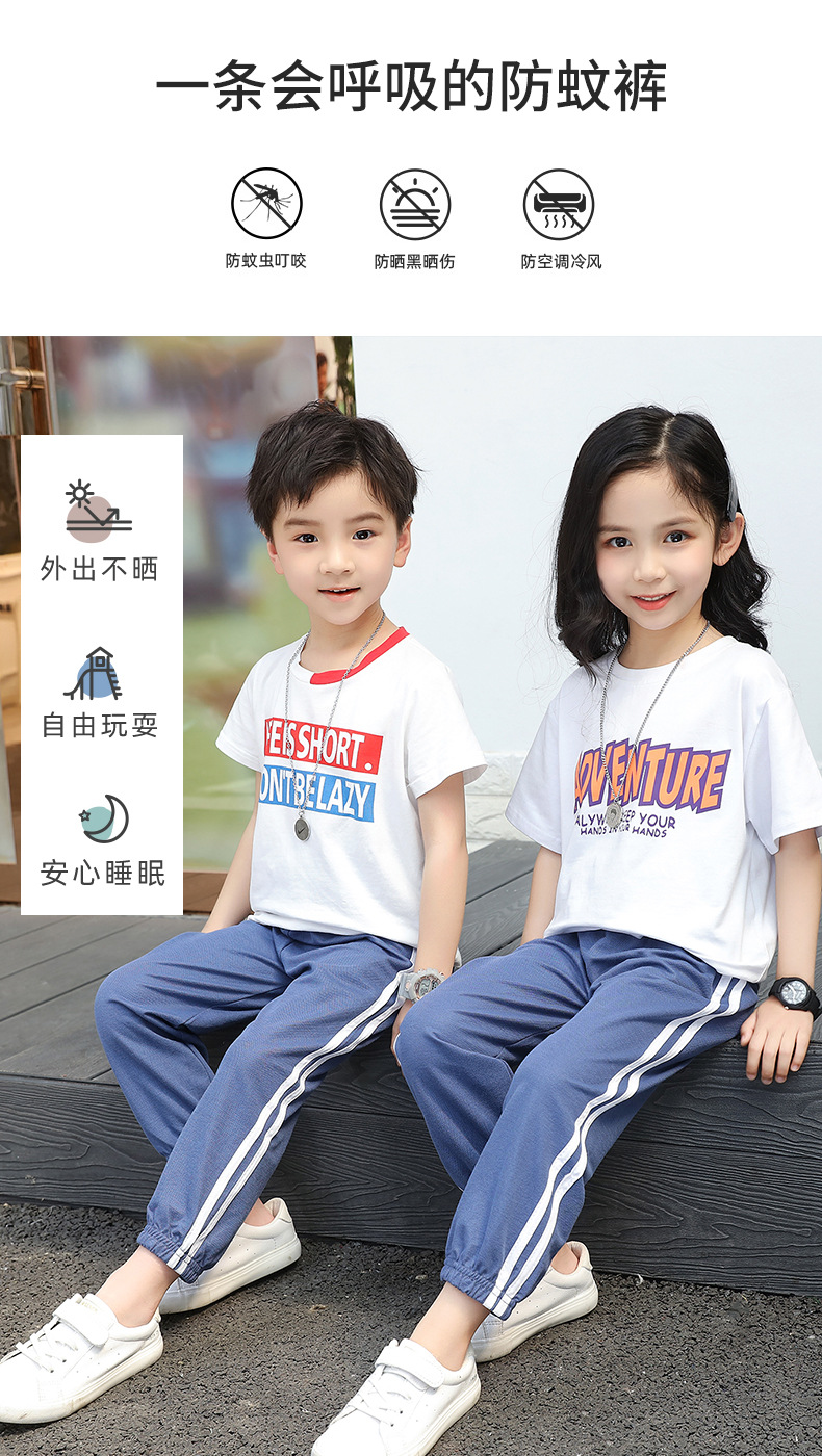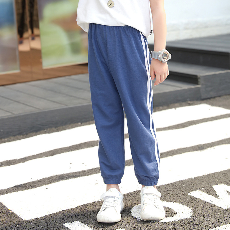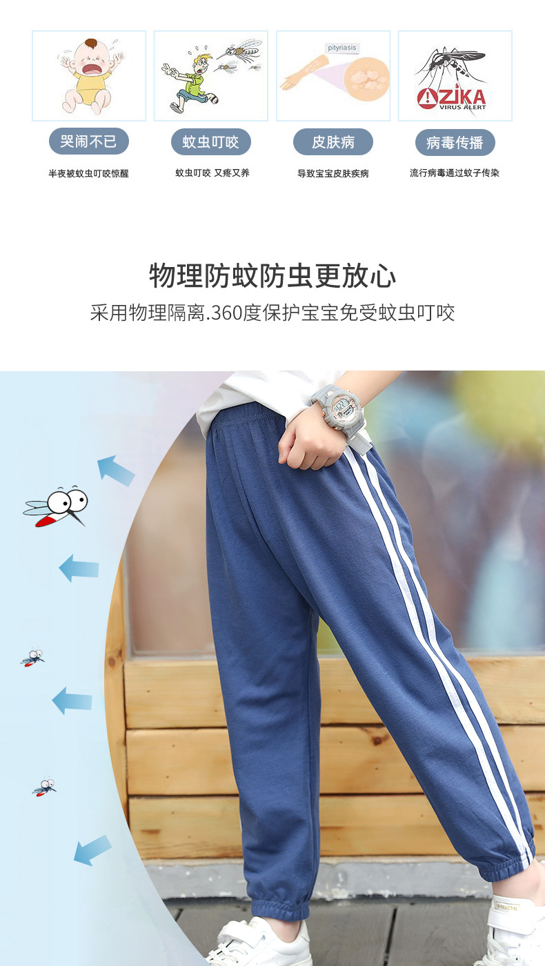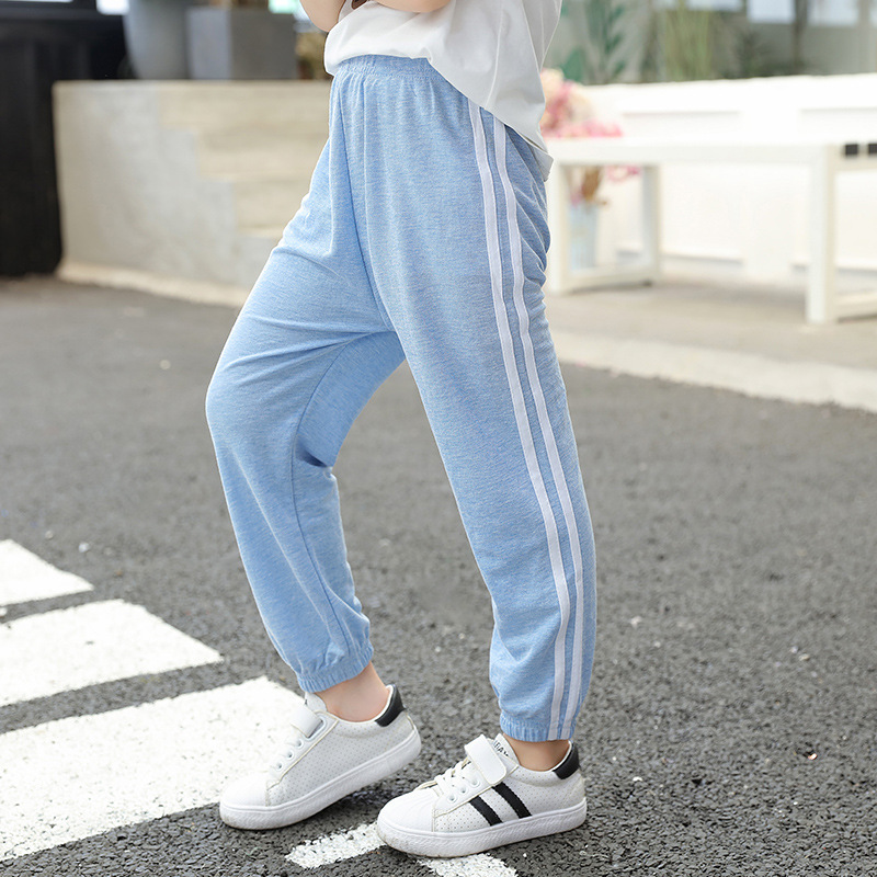 어린이 스포츠 모기 방지 바지 여름 여아 봄과 가을 아기 아이스 실크 캐주얼 남성 아동복 얇은 긴 바지 여름 원피스 배치