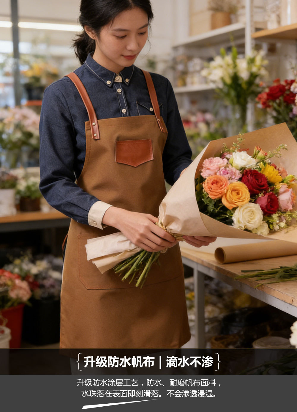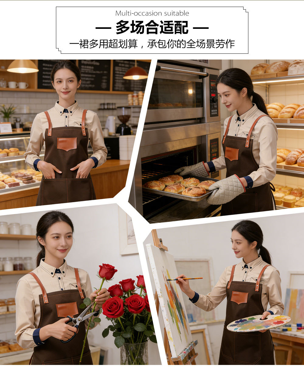 국경을 넘는 방수 캔버스 미용사 앞치마, 방오 작업복, 미용사 작업복, 커피숍 앞치마, 맞춤형 로고