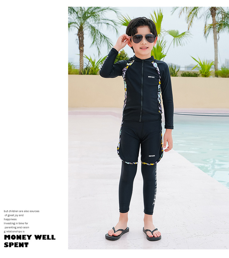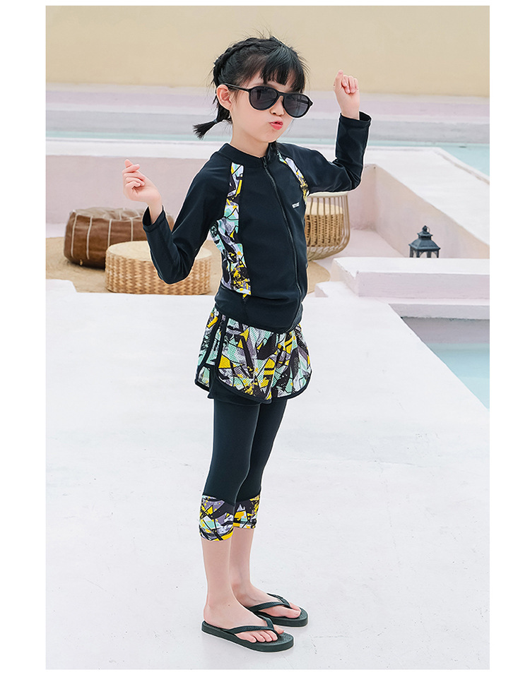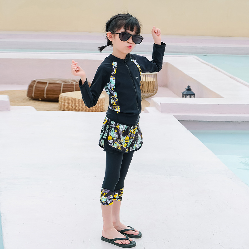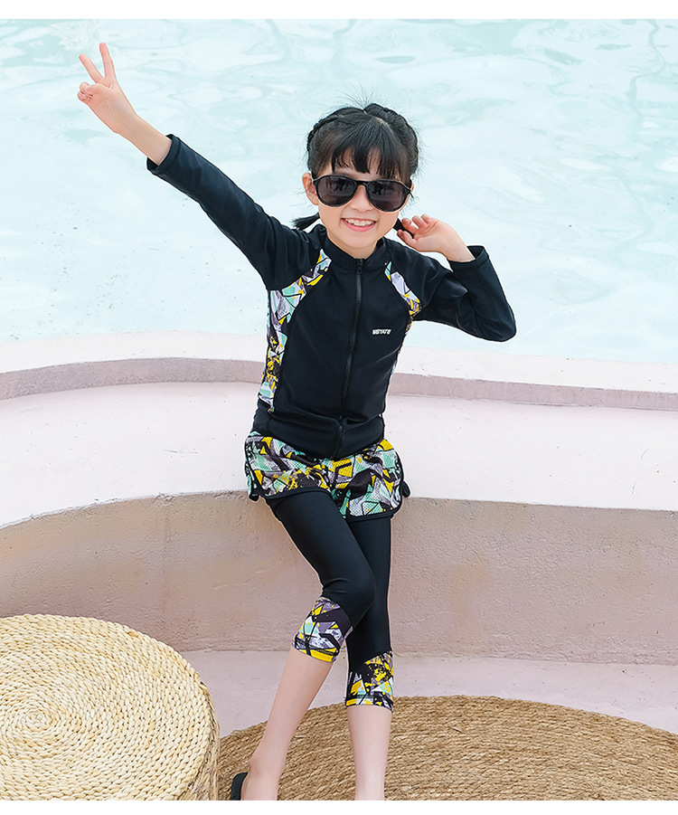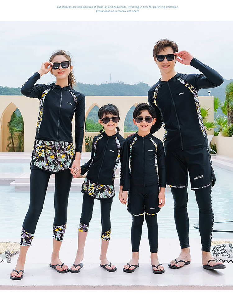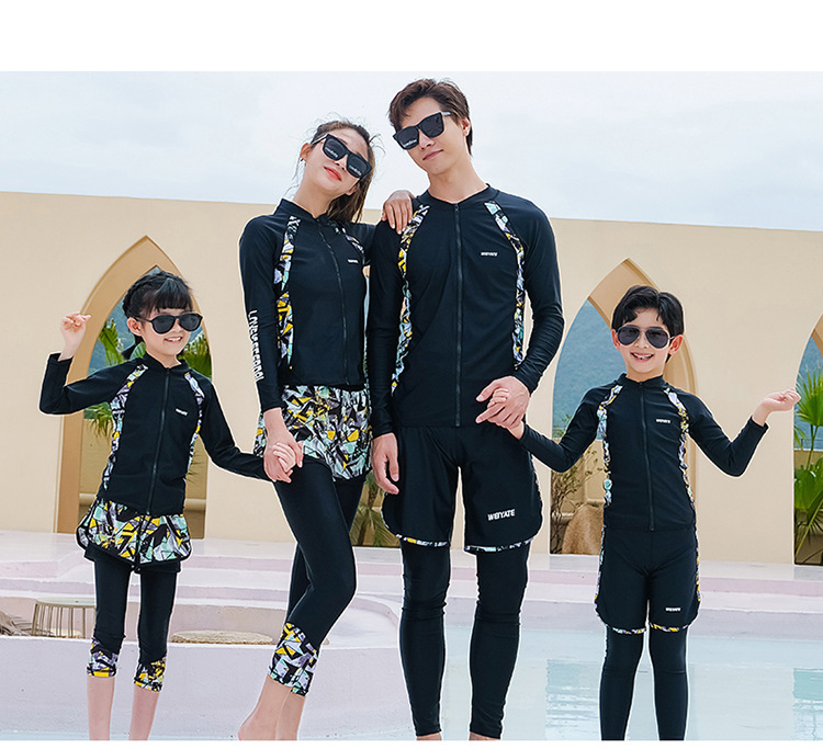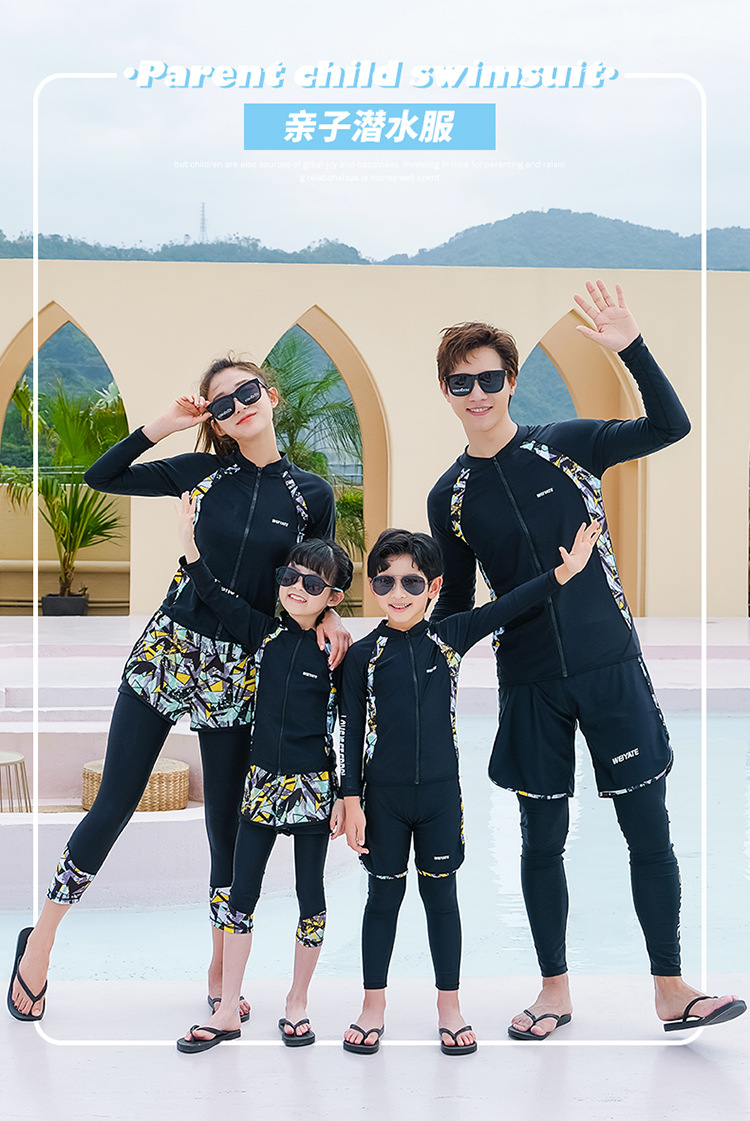 韩版儿童泳衣长袖防晒潜水服新款男女童沙滩印花分体泳装亲子系列
