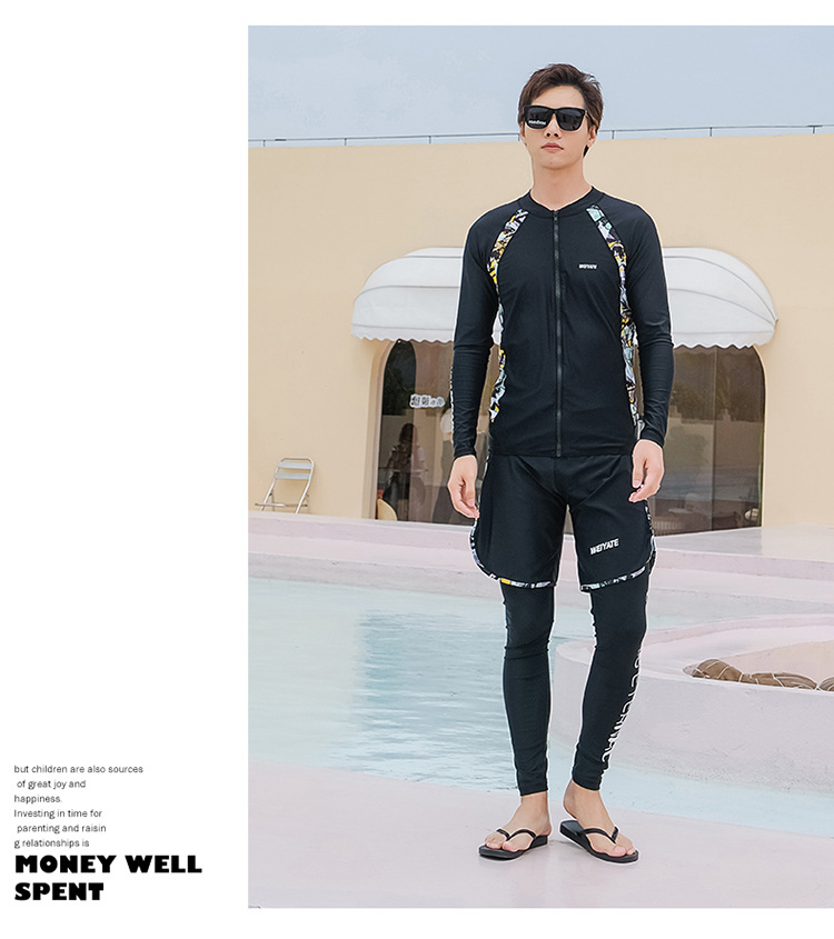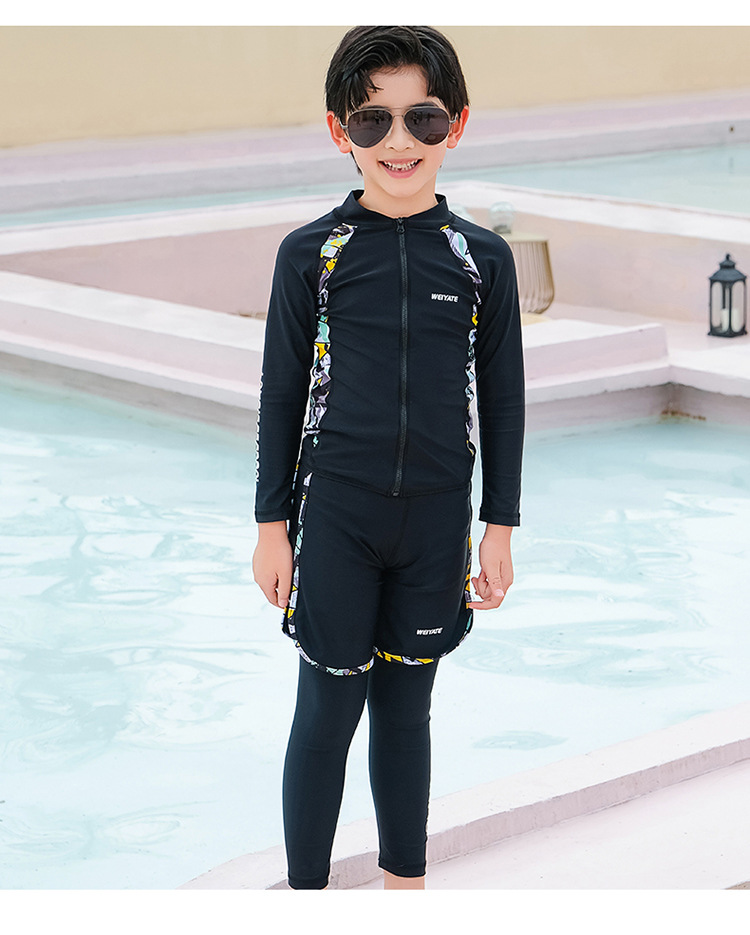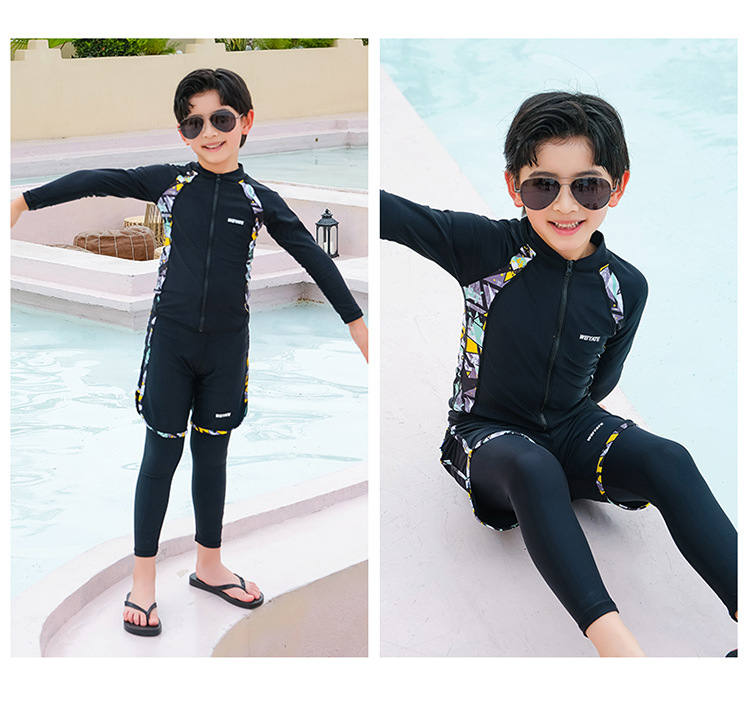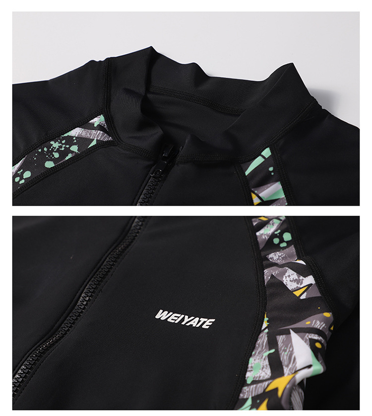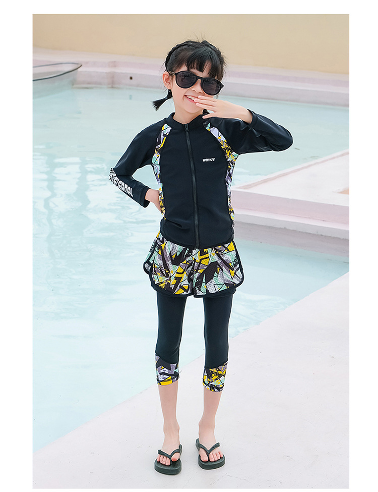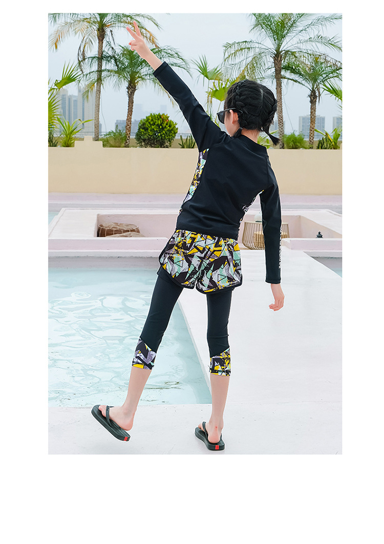 韩版儿童泳衣长袖防晒潜水服新款男女童沙滩印花分体泳装亲子系列