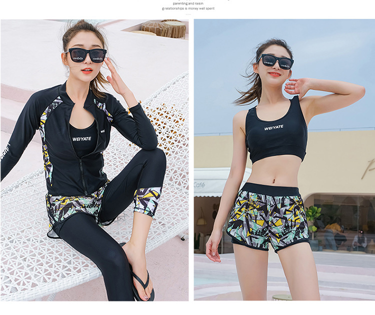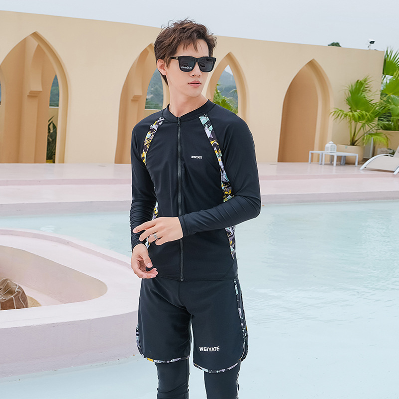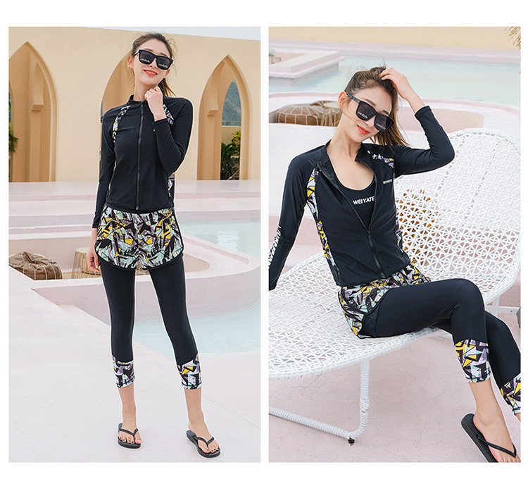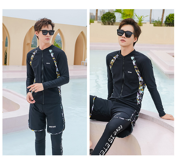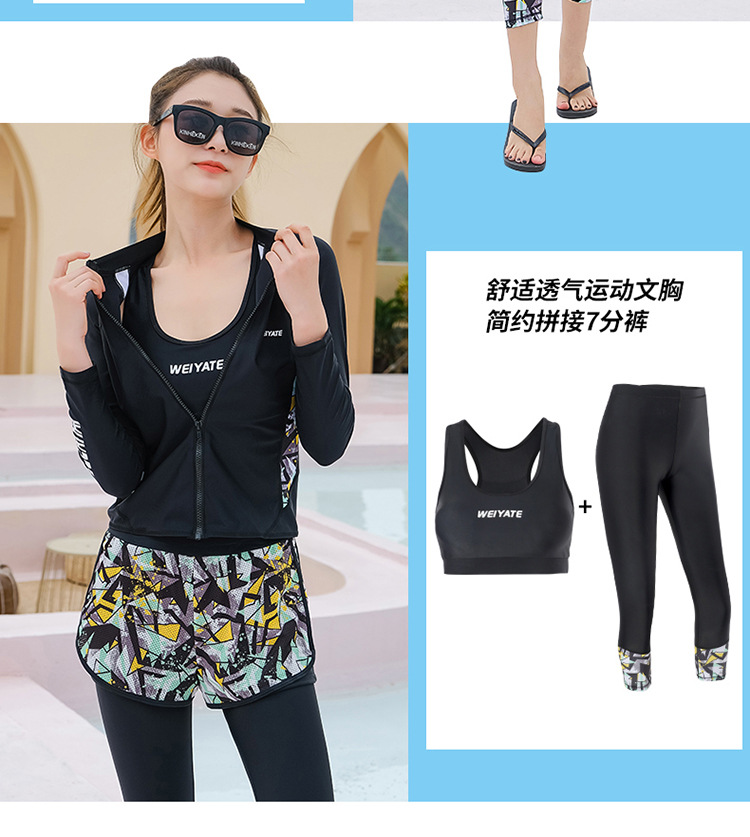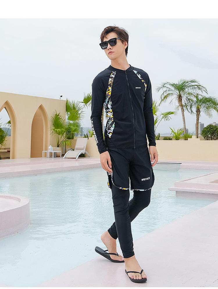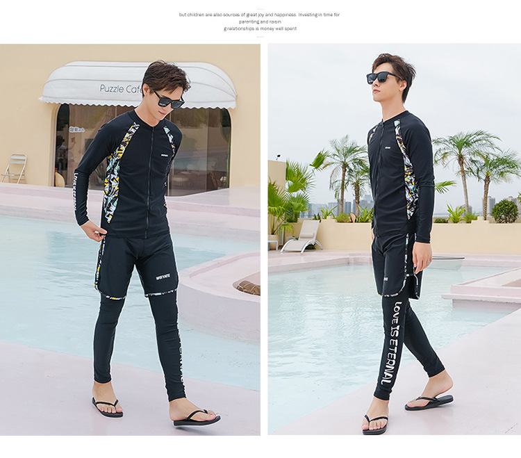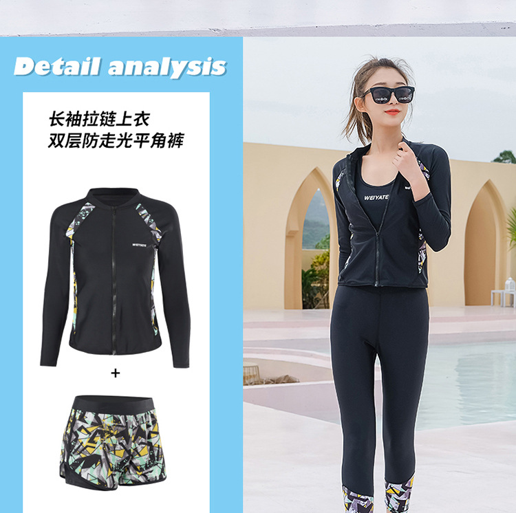 韩版儿童泳衣长袖防晒潜水服新款男女童沙滩印花分体泳装亲子系列