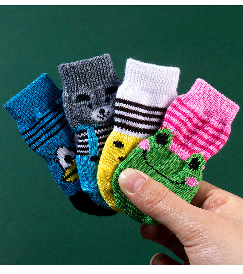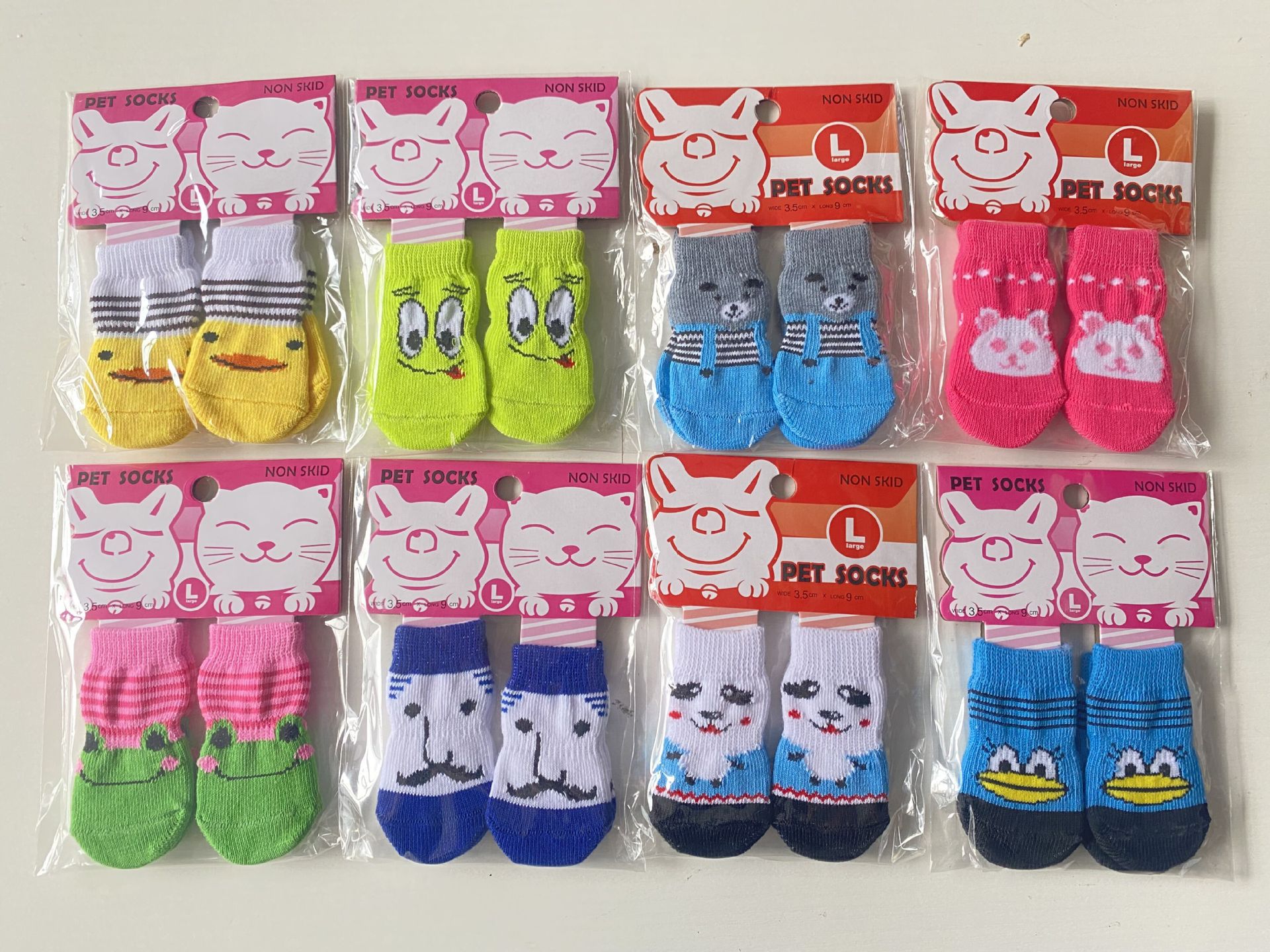 애완 동물 양말 하이 퀄리티 미끄럼 방지 바닥 개 발 커버 개 양말 테디독 코기 고양이 용품 4 팩 도매