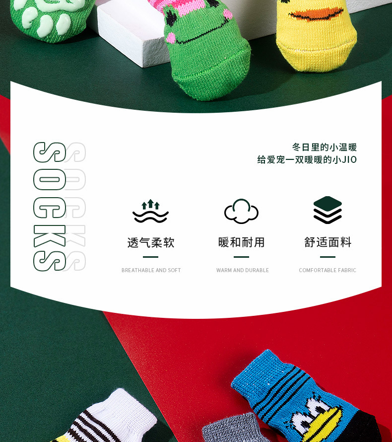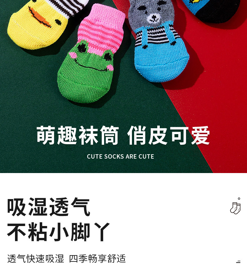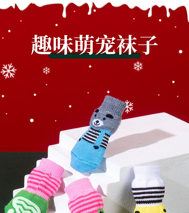 애완 동물 양말 하이 퀄리티 미끄럼 방지 바닥 개 발 커버 개 양말 테디독 코기 고양이 용품 4 팩 도매스토어 가기