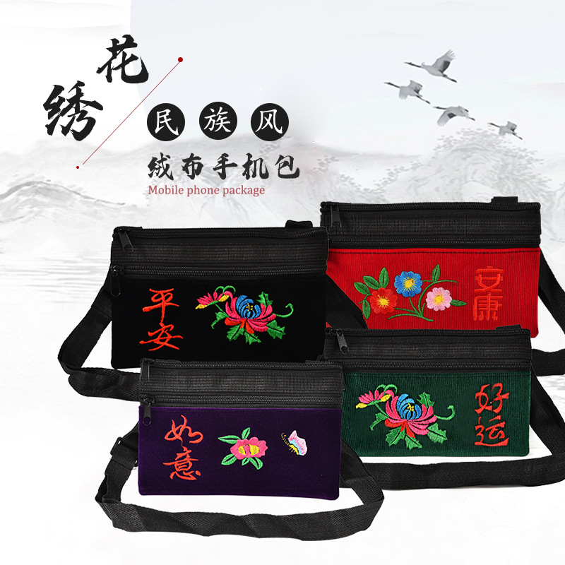 중년 및 노인 민족 자수 가방 숙녀 숄더백 자수 대각선 가방 허리 가방 휴대 전화 동전 지갑 공장 도매스토어 가기