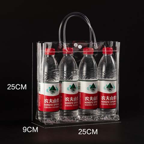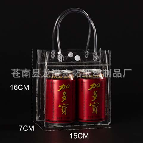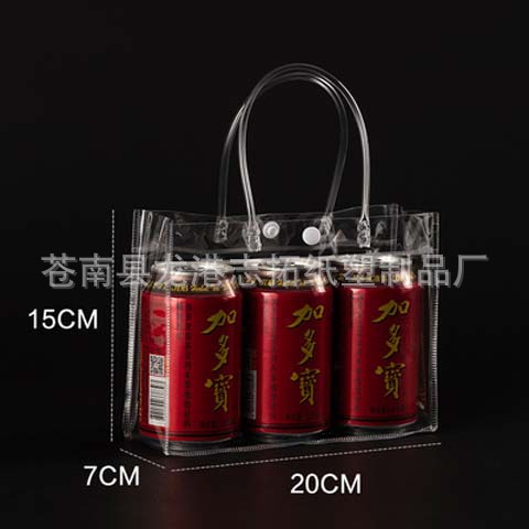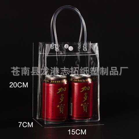 재고 PVC 투명 핸드백 플라스틱 선물 가방 손 선물 결혼식 사탕 레드 와인 포장 가방 두꺼운 로고