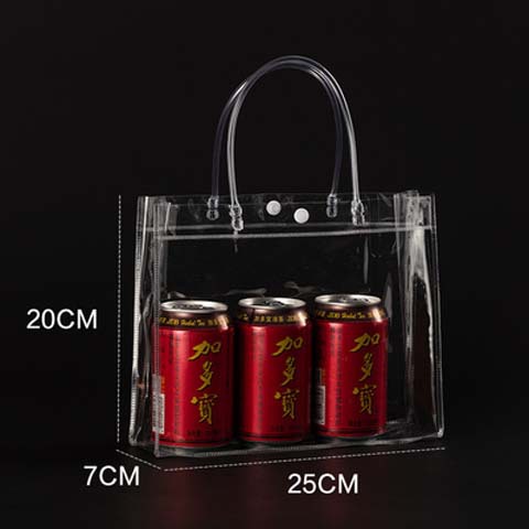 재고 PVC 투명 핸드백 플라스틱 선물 가방 손 선물 결혼식 사탕 레드 와인 포장 가방 두꺼운 로고스토어 가기
