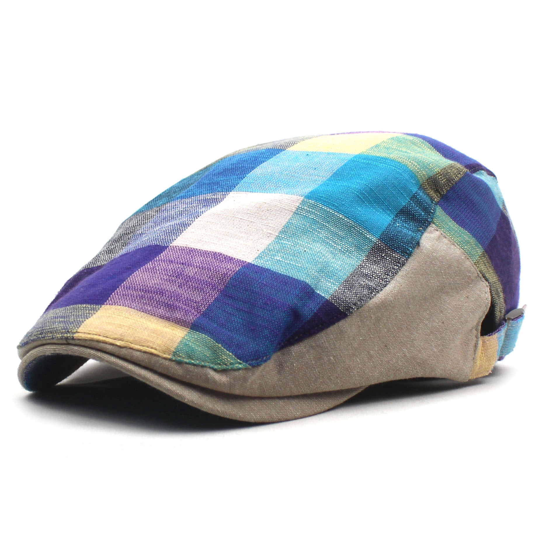 2021 얇은 베레모 남성과 여성의 빈티지 격자 무늬 모자 조절 가능한 태양 모자 여행 등산 모자