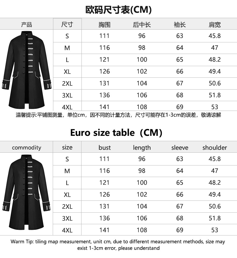 2025 새로운 대외 무역 유럽과 미국 남성 코트 중세 의류 단색 패션 Steampunk 복고풍 남성 유니폼스토어 가기