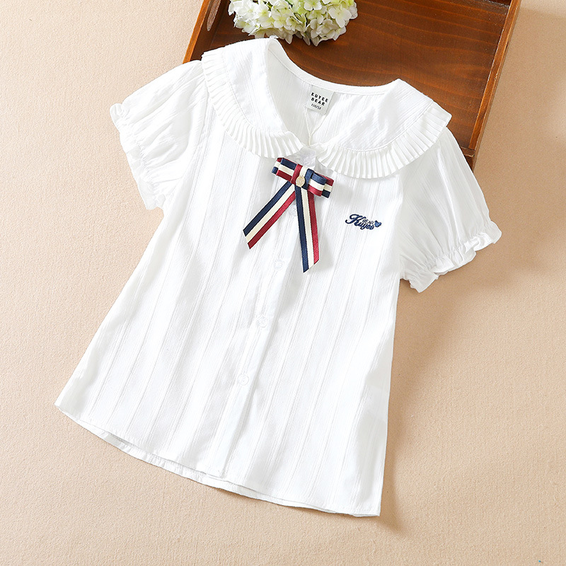 여자 셔츠 반팔 2025 새로운 여름 큰 어린이 인형 칼라 탑 여름 퍼프 슬리브 어린이 흰색 셔츠스토어 가기