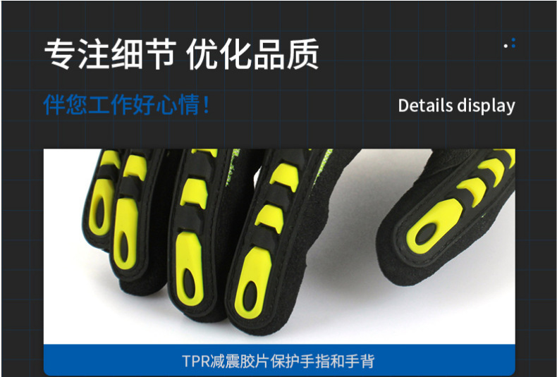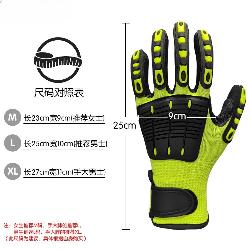 스팟 노란색 tpr 충돌 방지 장갑 형광 노란색 다기능 미끄럼 방지 내마모성 안티 스매쉬 충격 흡수 기계 보호 장갑