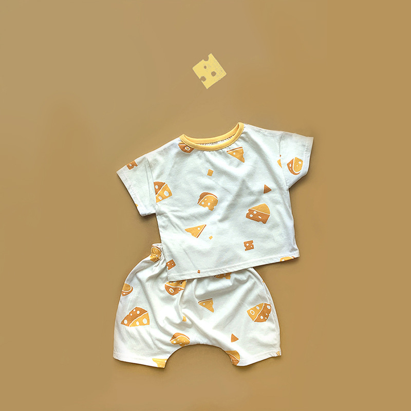 한국 2022 뉴 치즈 프린트 세트 얇은 통기성 어린이 반팔 반바지 2 종 세트