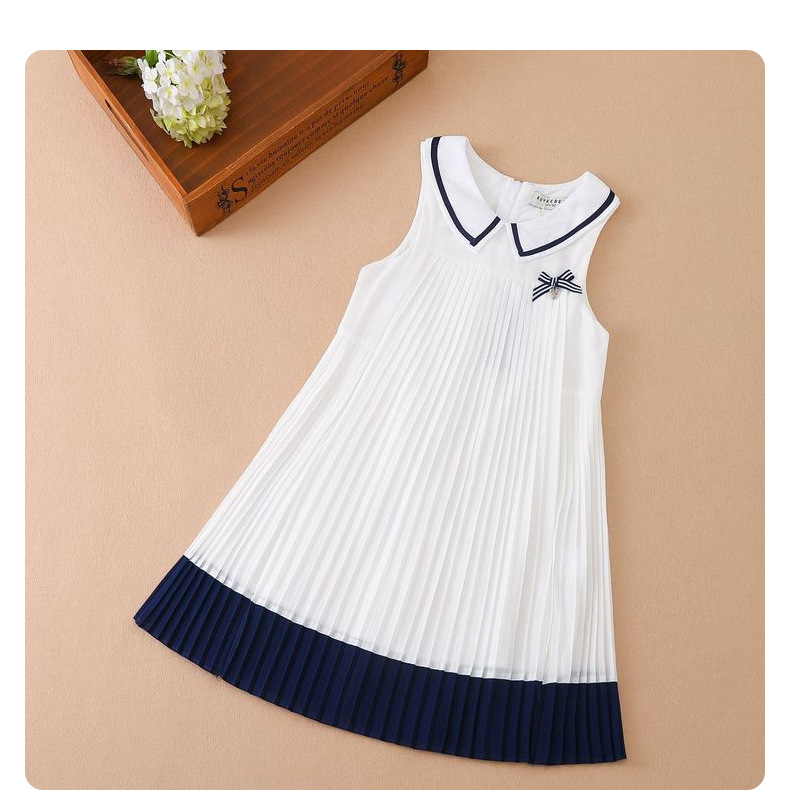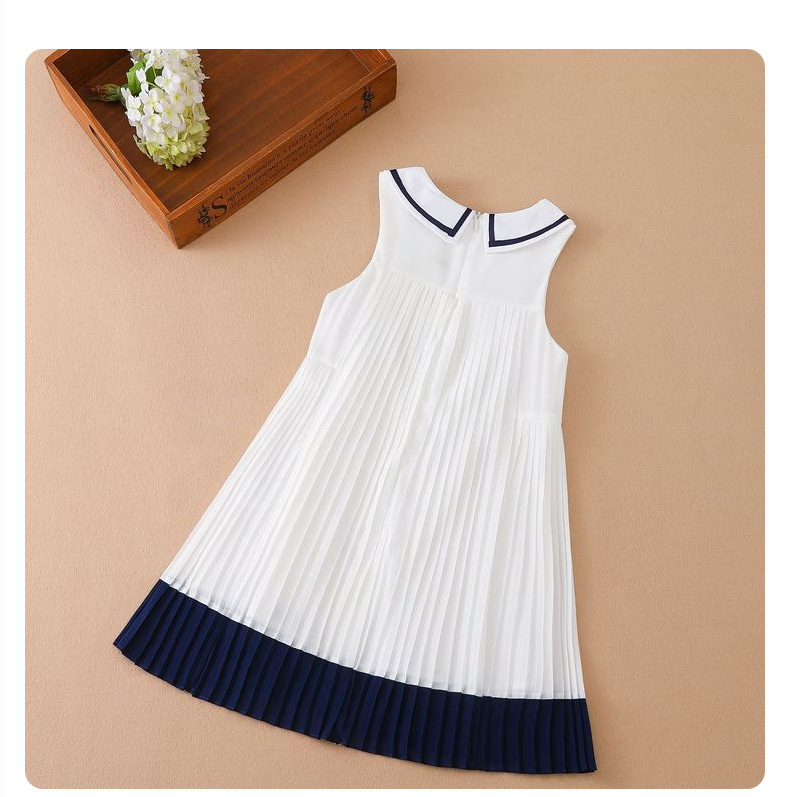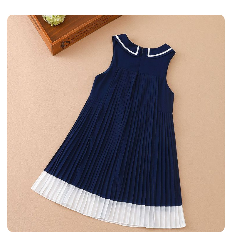 여아 쉬폰 원피스 여름 한국 스타일 중대형 어린이용 면 민소매 라펠 루즈핏 어린이 주름 치마 순면 A라인 치마
