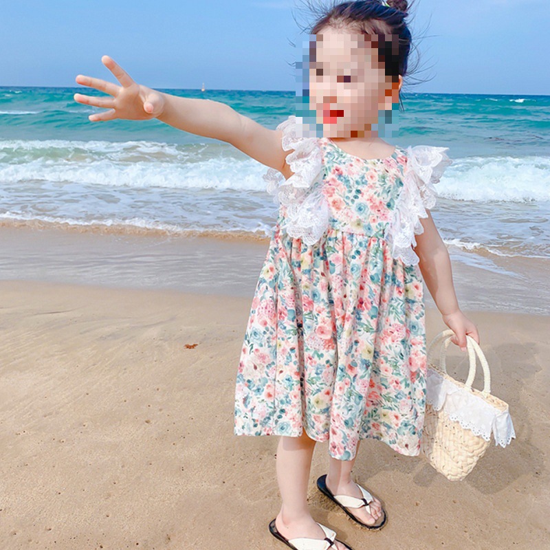 여아 스커트 꽃 레이스 비행 슬리브 원피스 공주 스커트 23 여름 새로운 대외 무역 아동 의류 3-8 세