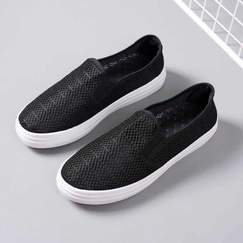 봄과 가을 새로운 흰색 신발 메쉬 신발 여성 학생 신발 슬립온 여성 신발 캐주얼 플랫 여성 싱글 신발