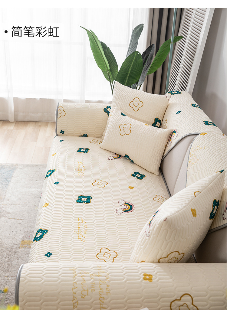 여름 소파 쿠션 미끄럼 방지 얼음 실크 라텍스 소파 쿠션 세트 만화 매트 쿠션 소파 타월 커버의 전체 세트