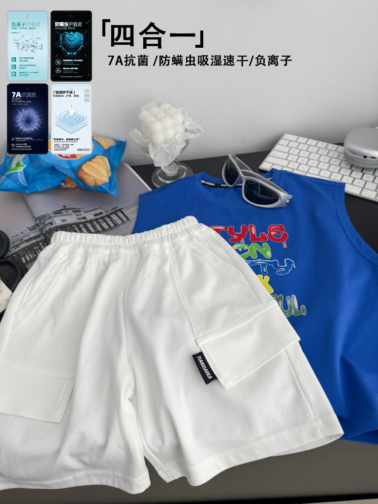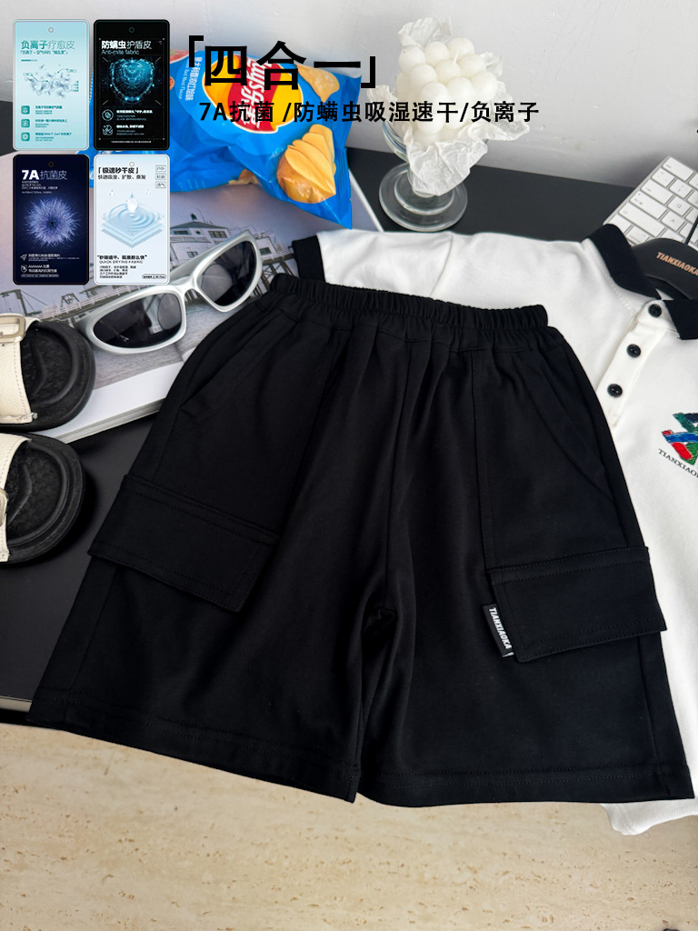 Chen Ma 아동복 남아 여름 작업복 반바지 어린이 바지 베이비 블랙 기술 방오 바지 편안한 캐주얼 바지