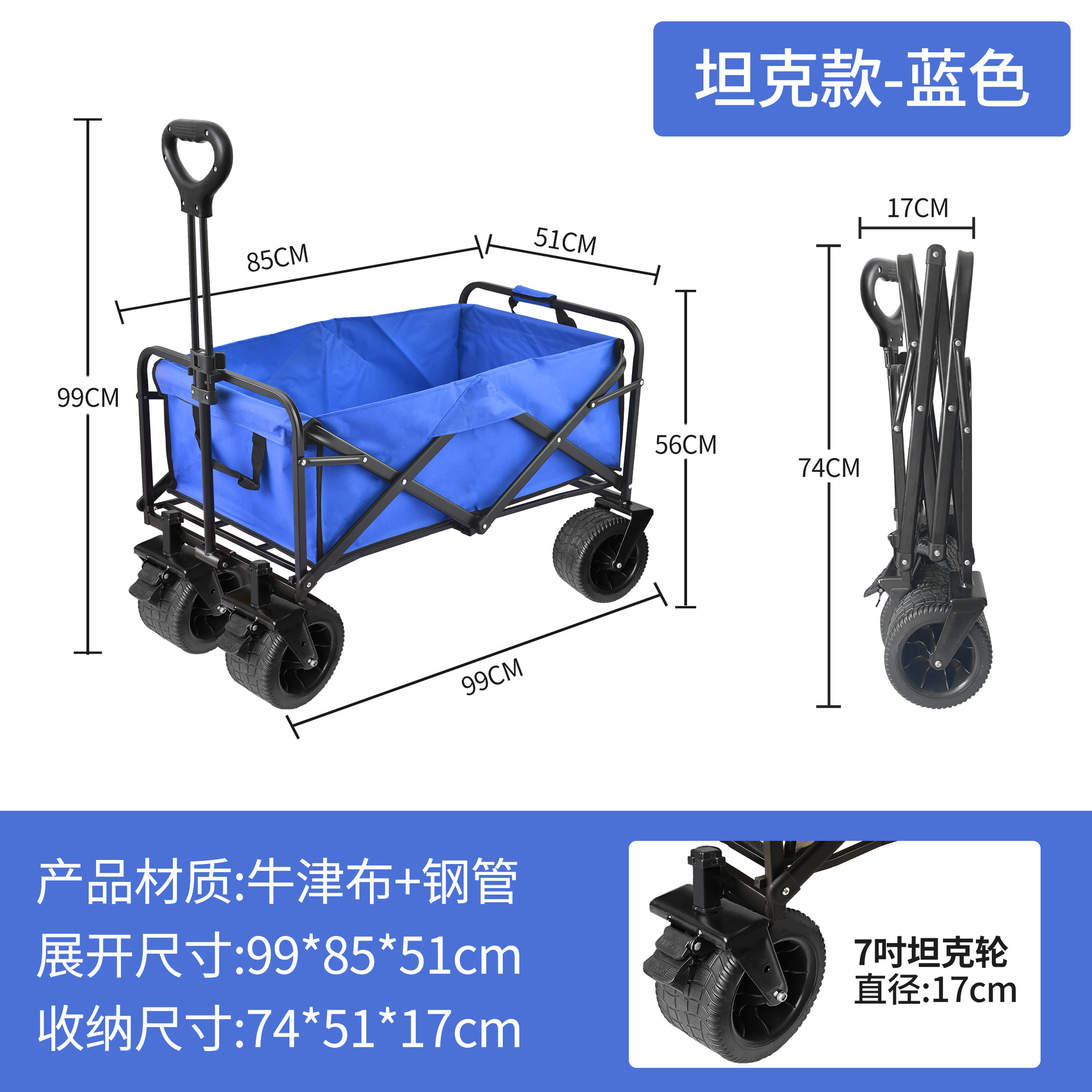 • [T62 탱크 모델] 7inch 와이드 휠 + 브레이크 포함 + 블루 옥스포드 천 포켓