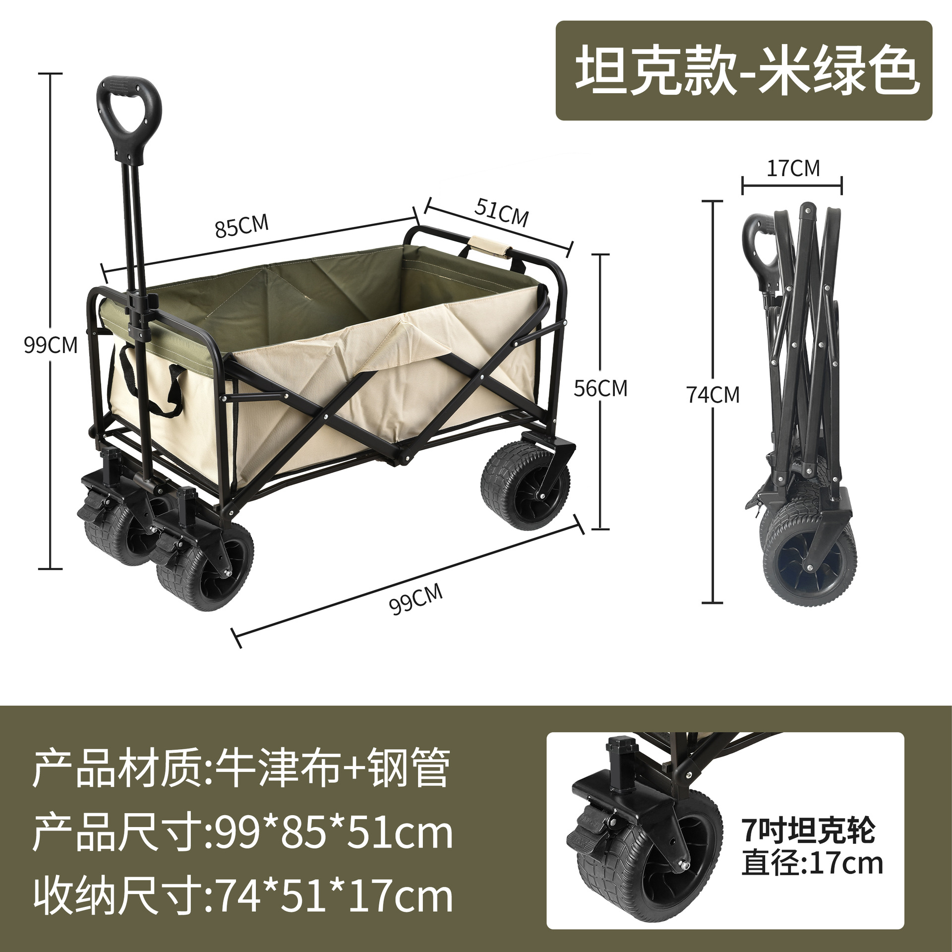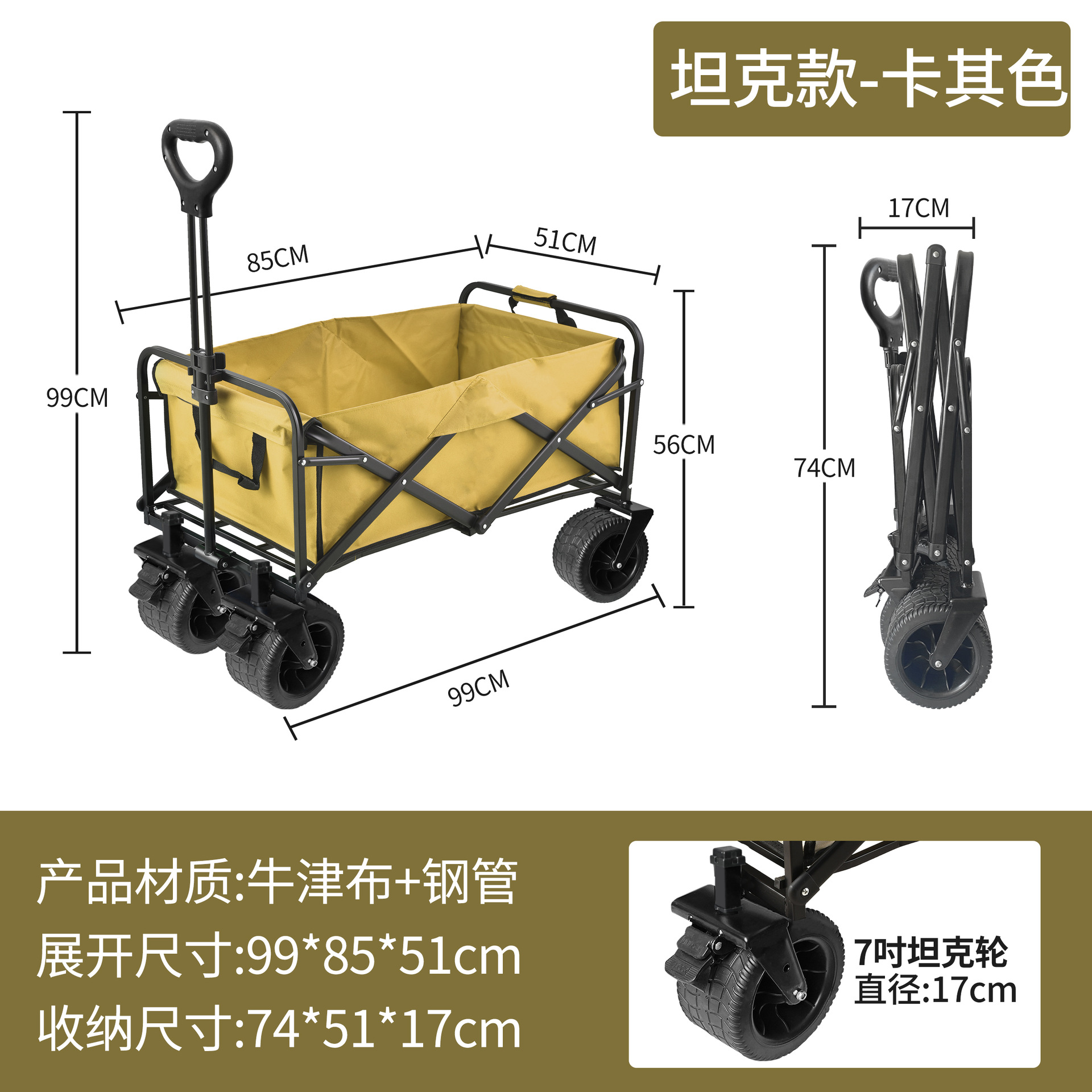 • [T62 탱크 모델] 7inch 와이드 휠 + 브레이크 포함 + 카키색 옥스포드 천 포켓