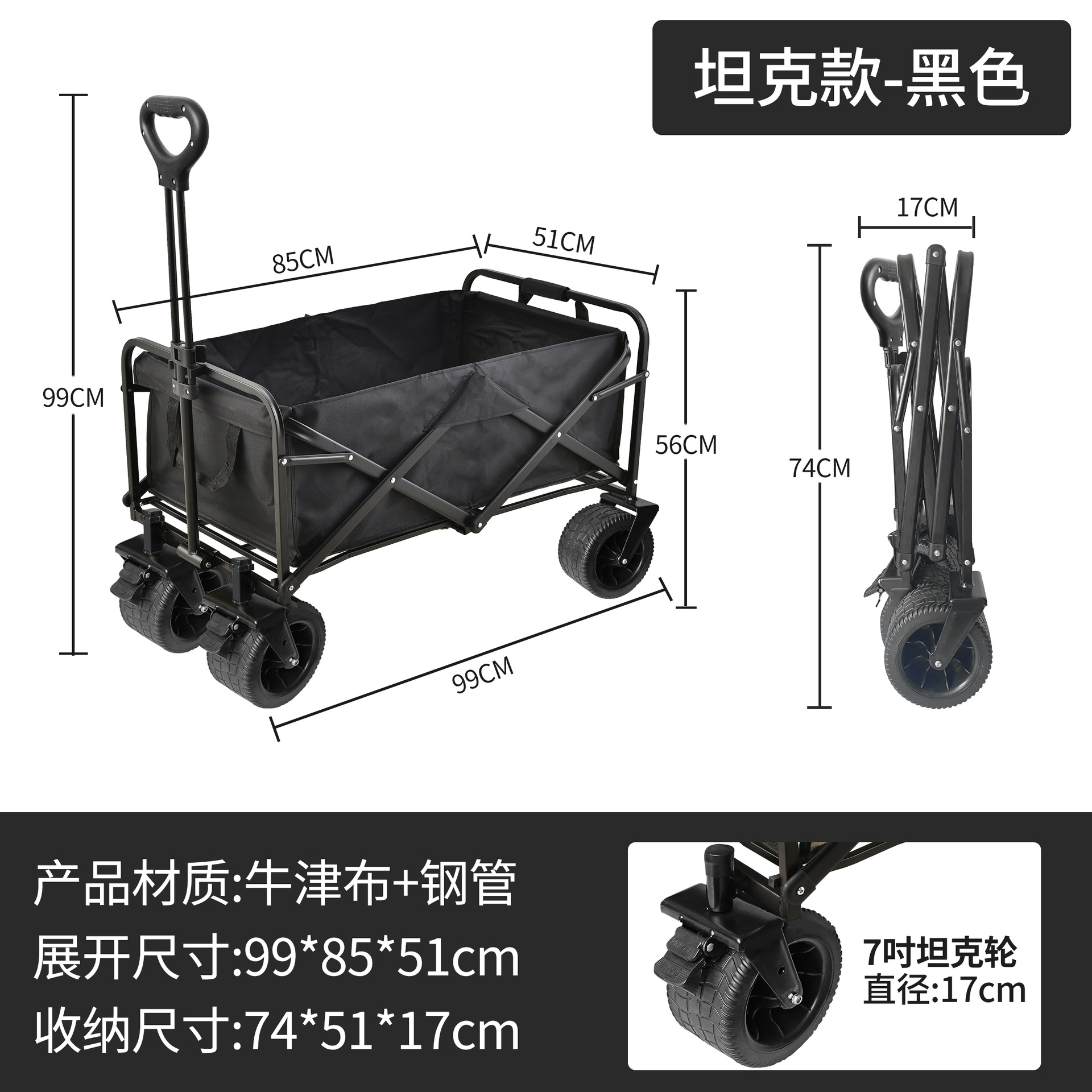 • [T62 탱크 모델] 7inch 와이드 휠 + 브레이크 포함 + 블랙 옥스포드 천 포켓