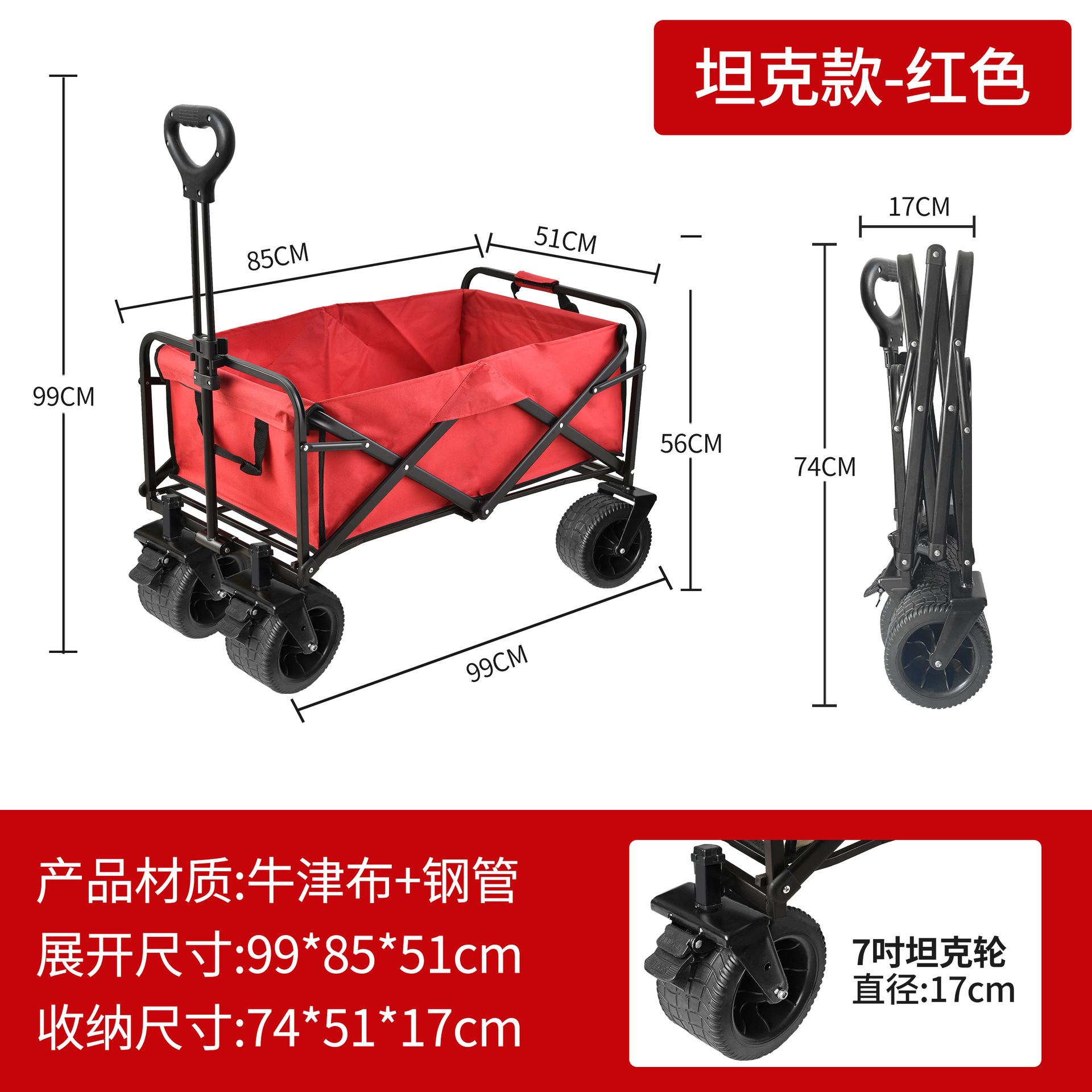 • [T62 탱크 모델] 7inch 와이드 휠 + 브레이크 포함 + 빨간색 옥스포드 천 포켓