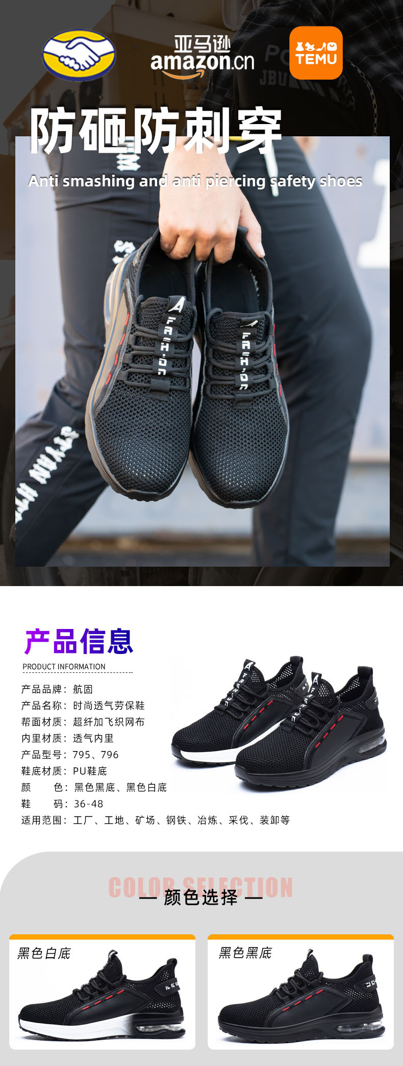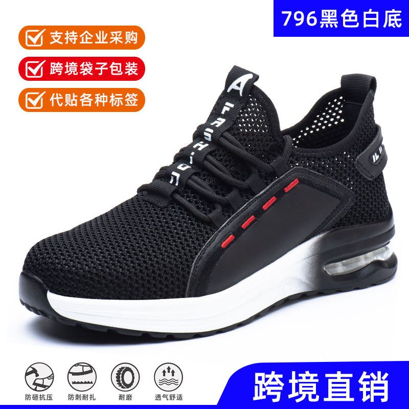 크로스 보더 사계절 경량 노동 보호 신발 PU 부드러운 밑창 통기성 신발 메쉬 충돌 방지 안전 신발 남성용 펑크 방지 작업 신발스토어 가기