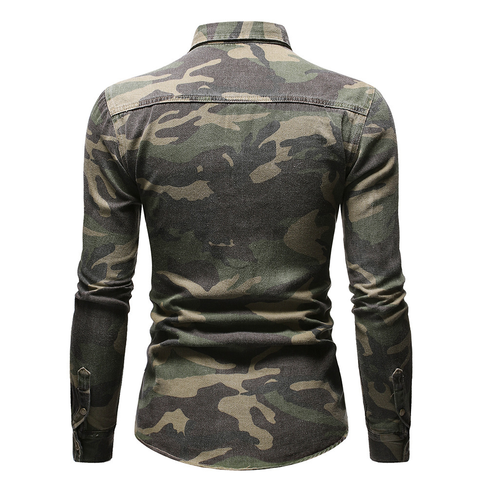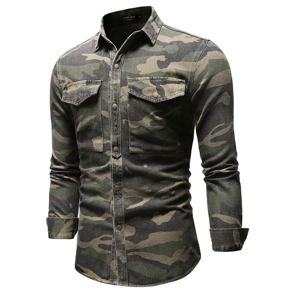 外贸速卖通wish男士军绿迷彩牛仔衬衫户外登山牛仔上衣3311