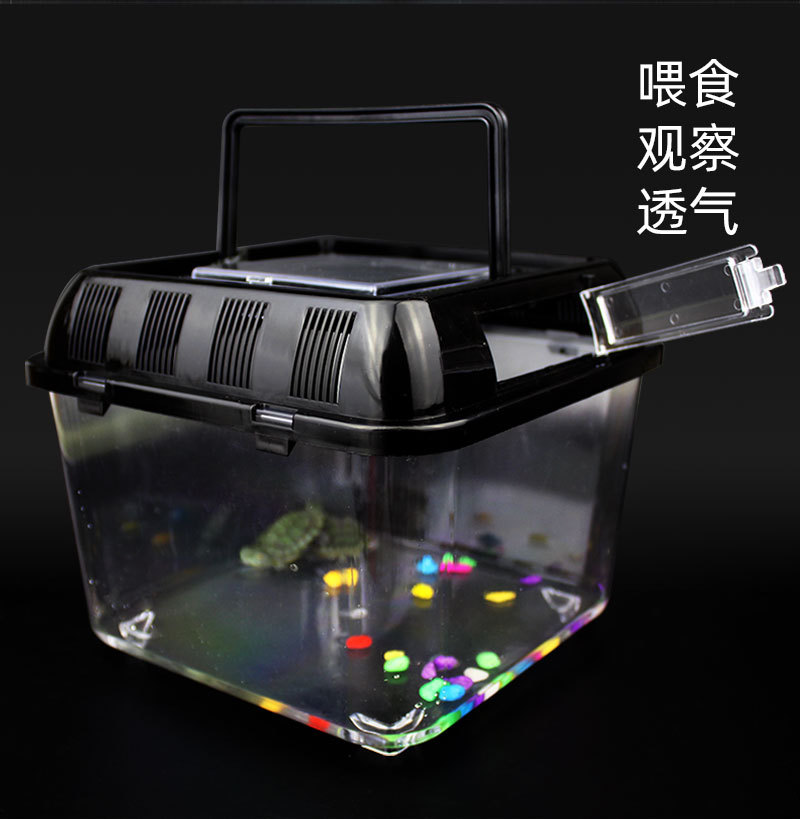 거북이 탱크 휴대용 금붕어 탱크 플라스틱 투명 햄스터 상자 블랙 중국 상자 거북이 상자 편리한 애완 동물 상자