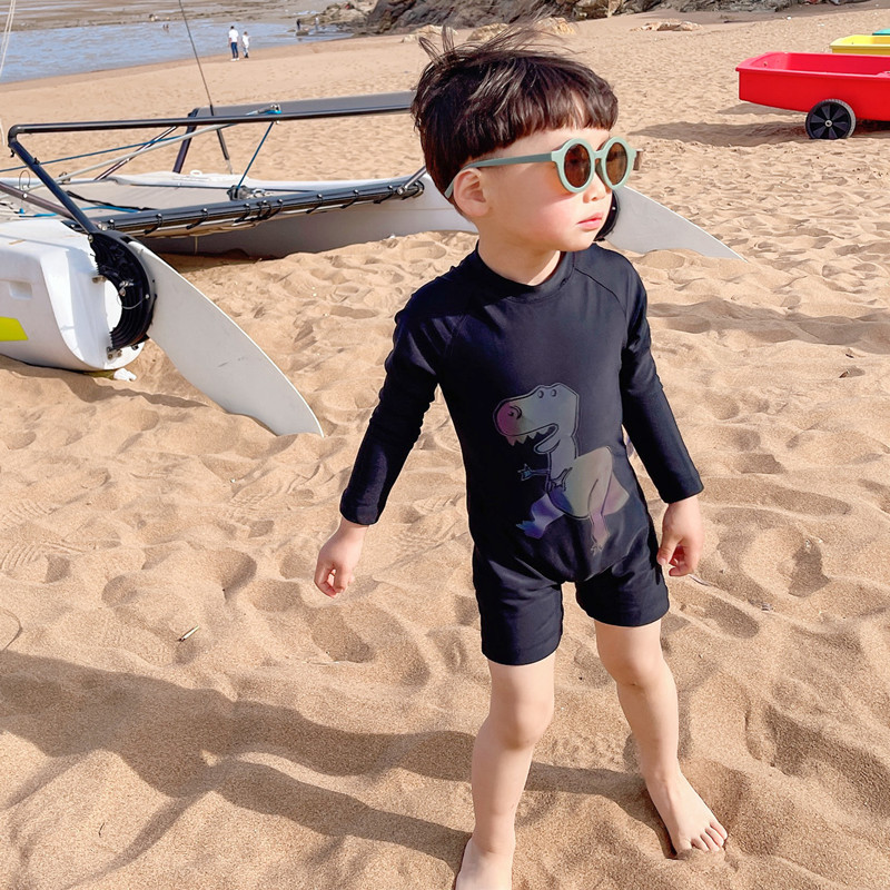 어린이 수영복 소년의 긴팔 원피스 자외선 차단제 속건 아기 소년의 귀여운 만화 공룡 홀리데이 비치 수영복