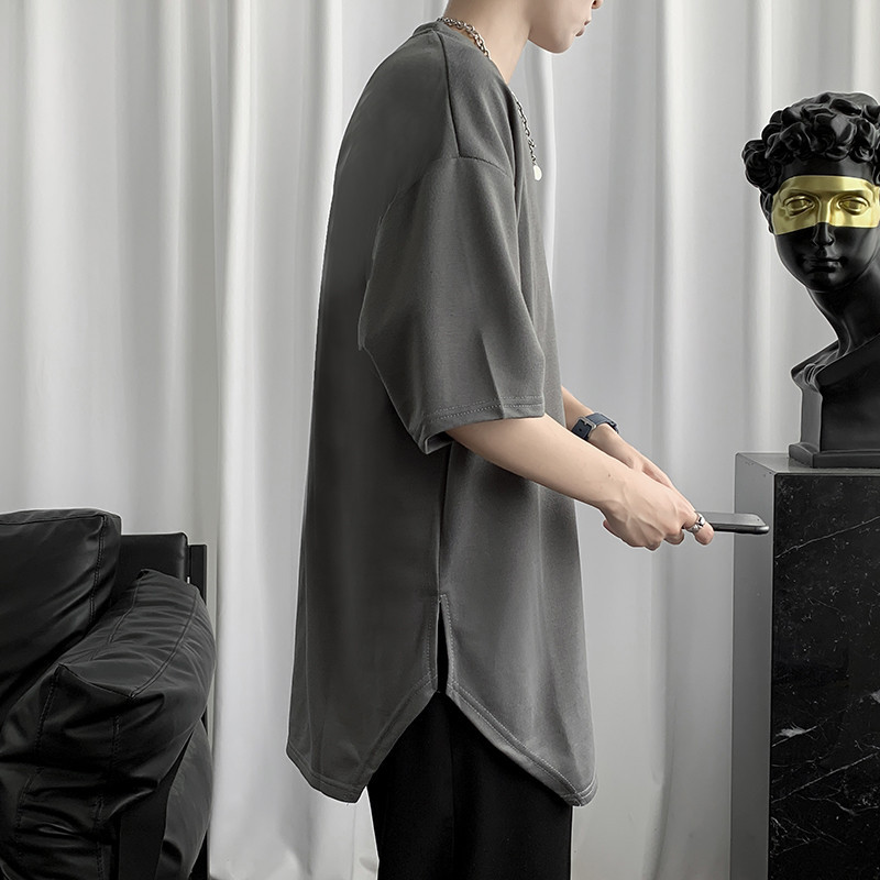 남성용 반팔 티셔츠, 홍콩 스타일, 트임 디자인, 루즈핏 반팔 상의, 학생용 트렌디 브랜드 캐주얼 티셔츠, 홍콩 스타일 멋짐