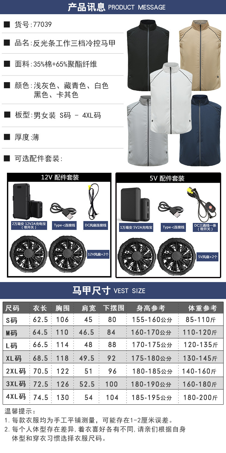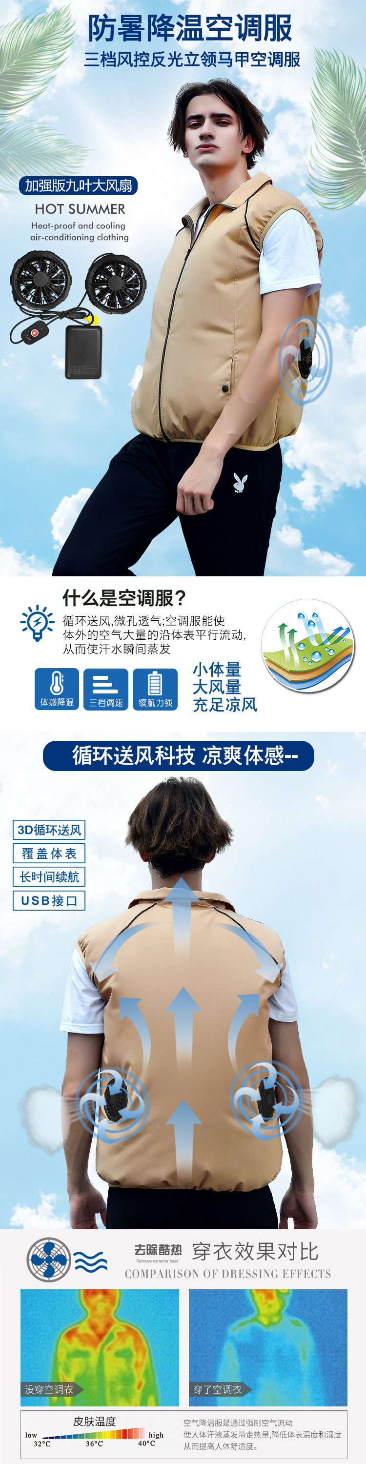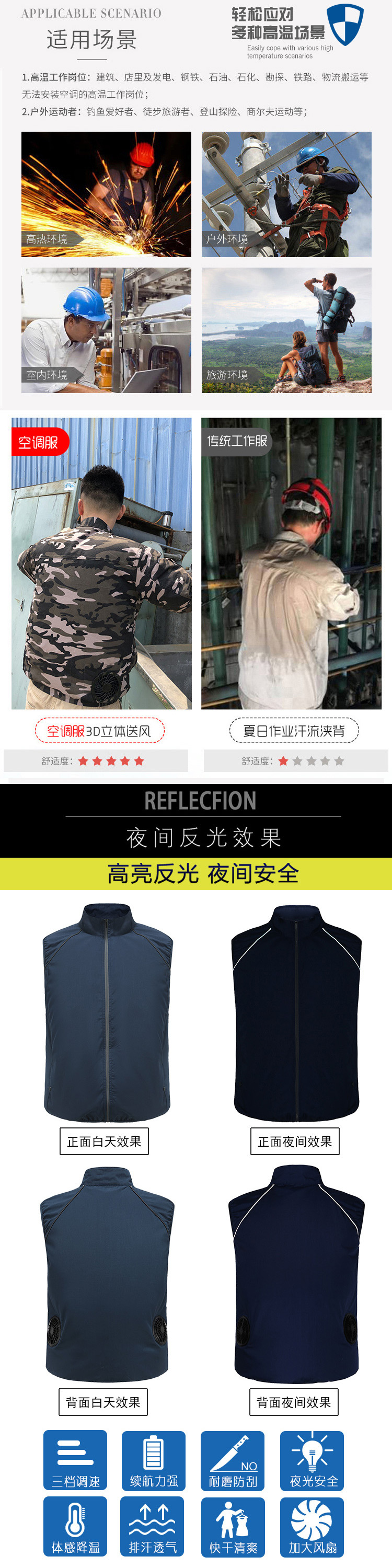 야외 여름 수분 흡수 팬 세트 12V 냉각 에어컨 세트 조끼 여름 반사 스트립 노동 보호 작업 옷스토어 가기