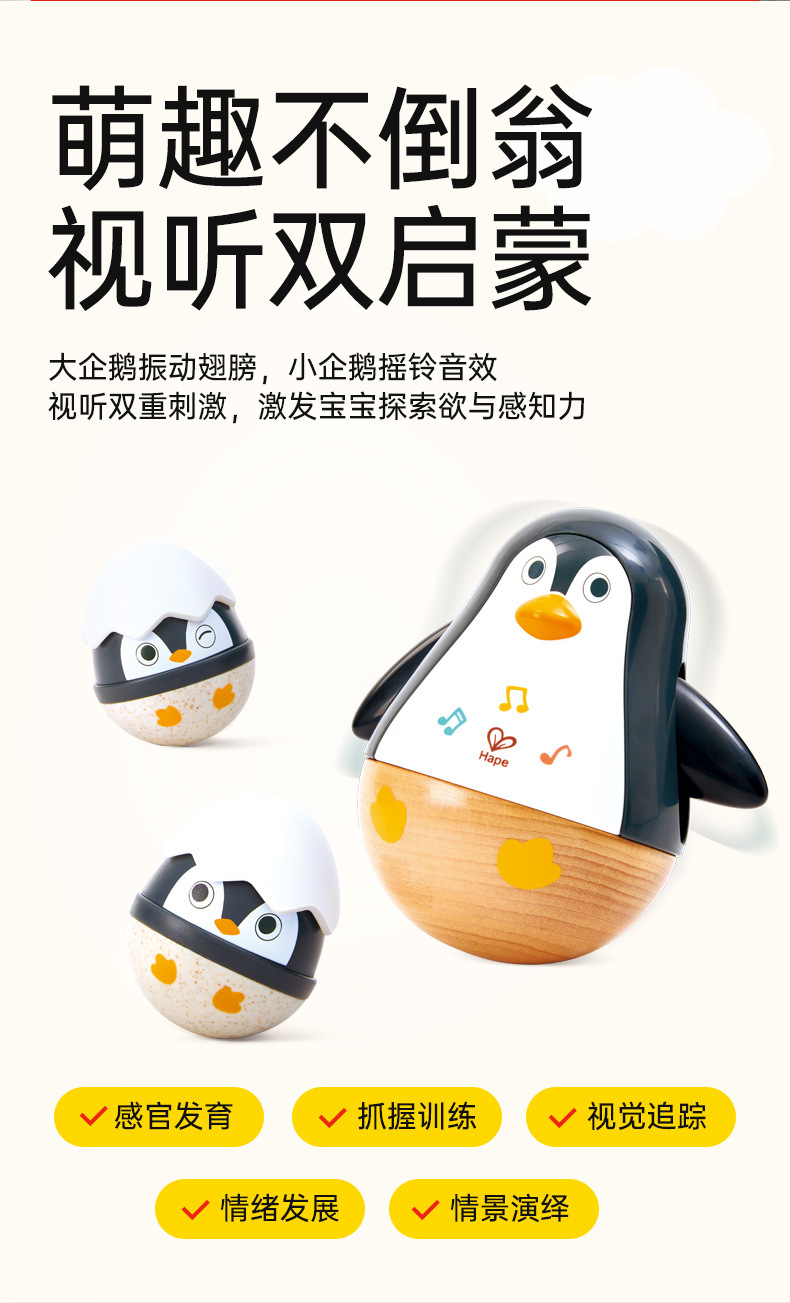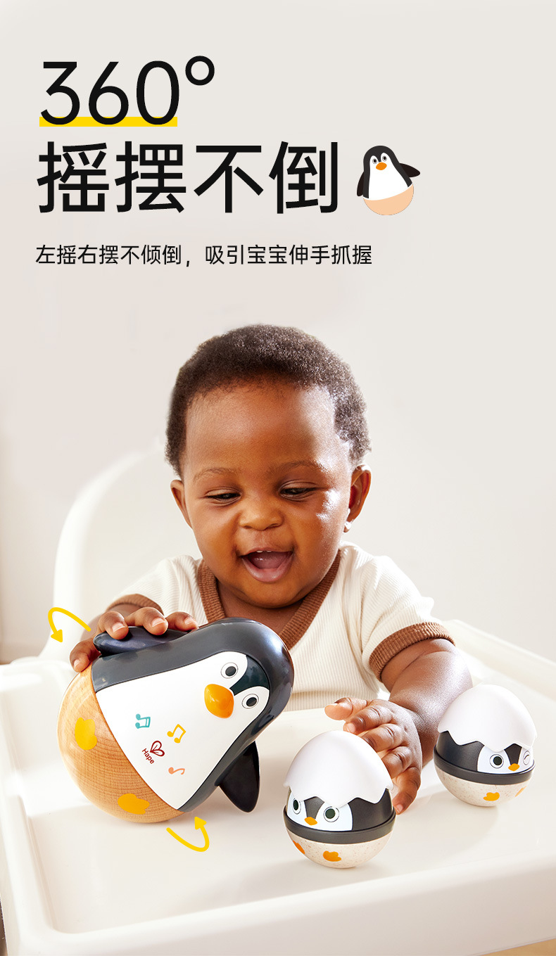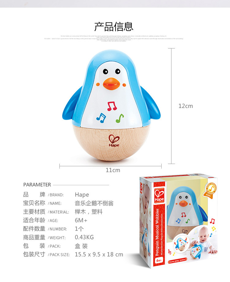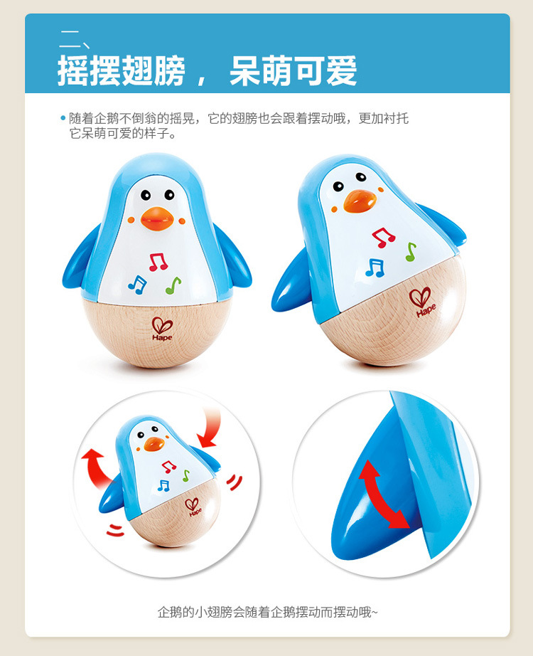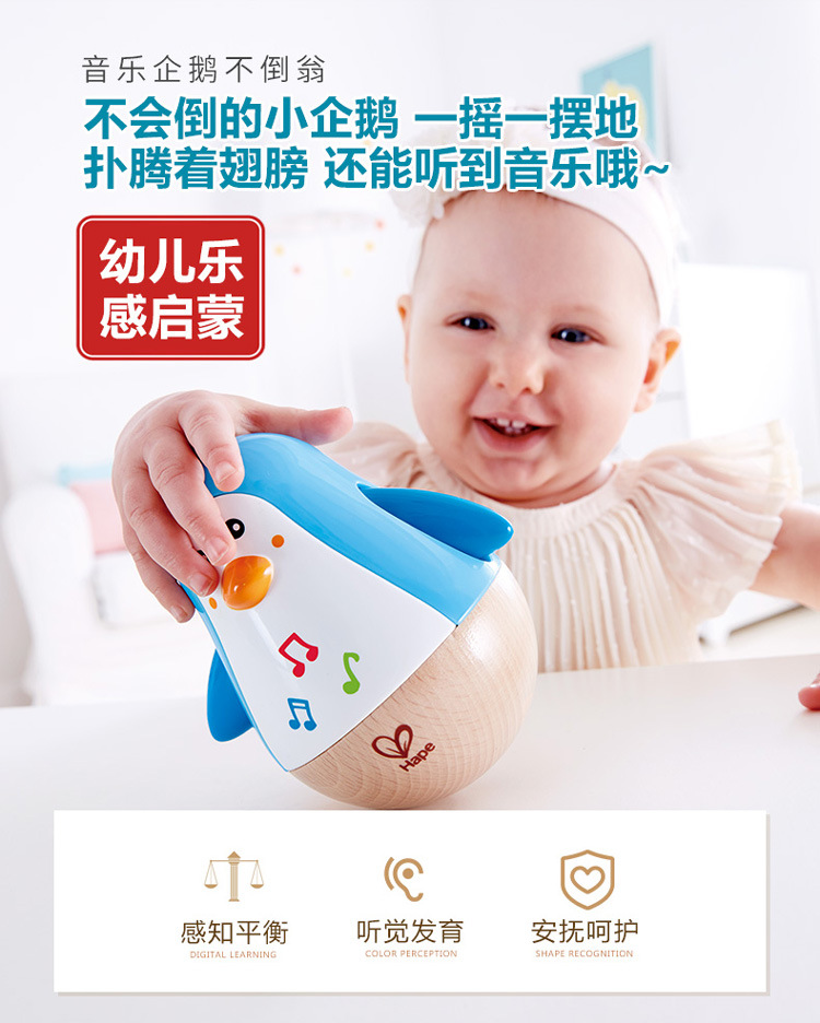 HαPE 음악 펭귄 텀블러 장난감 아기 교육 어린이 음악 상자 전자 드럼 벨 소리