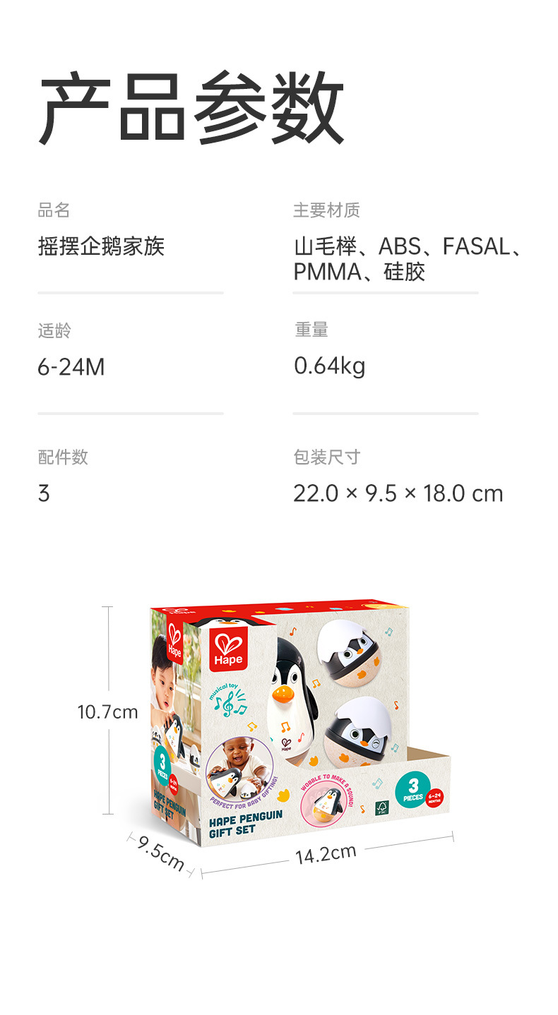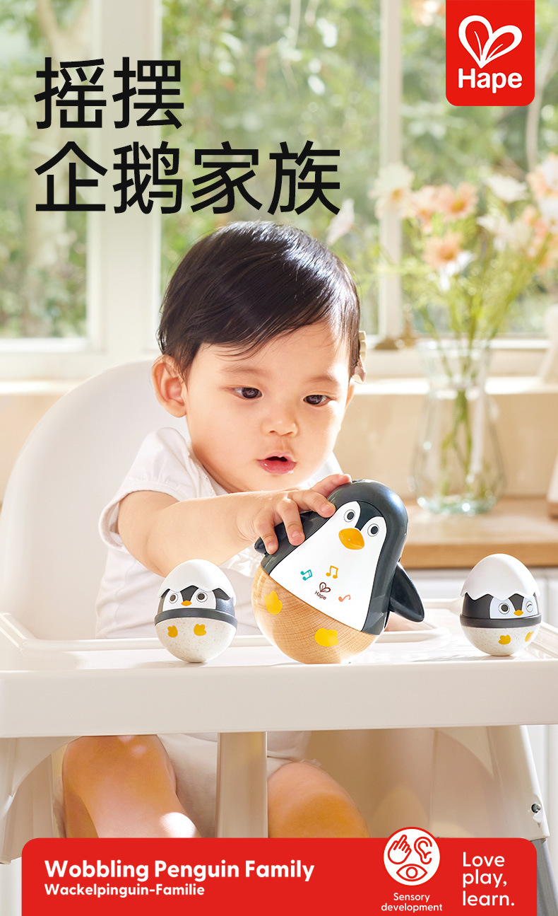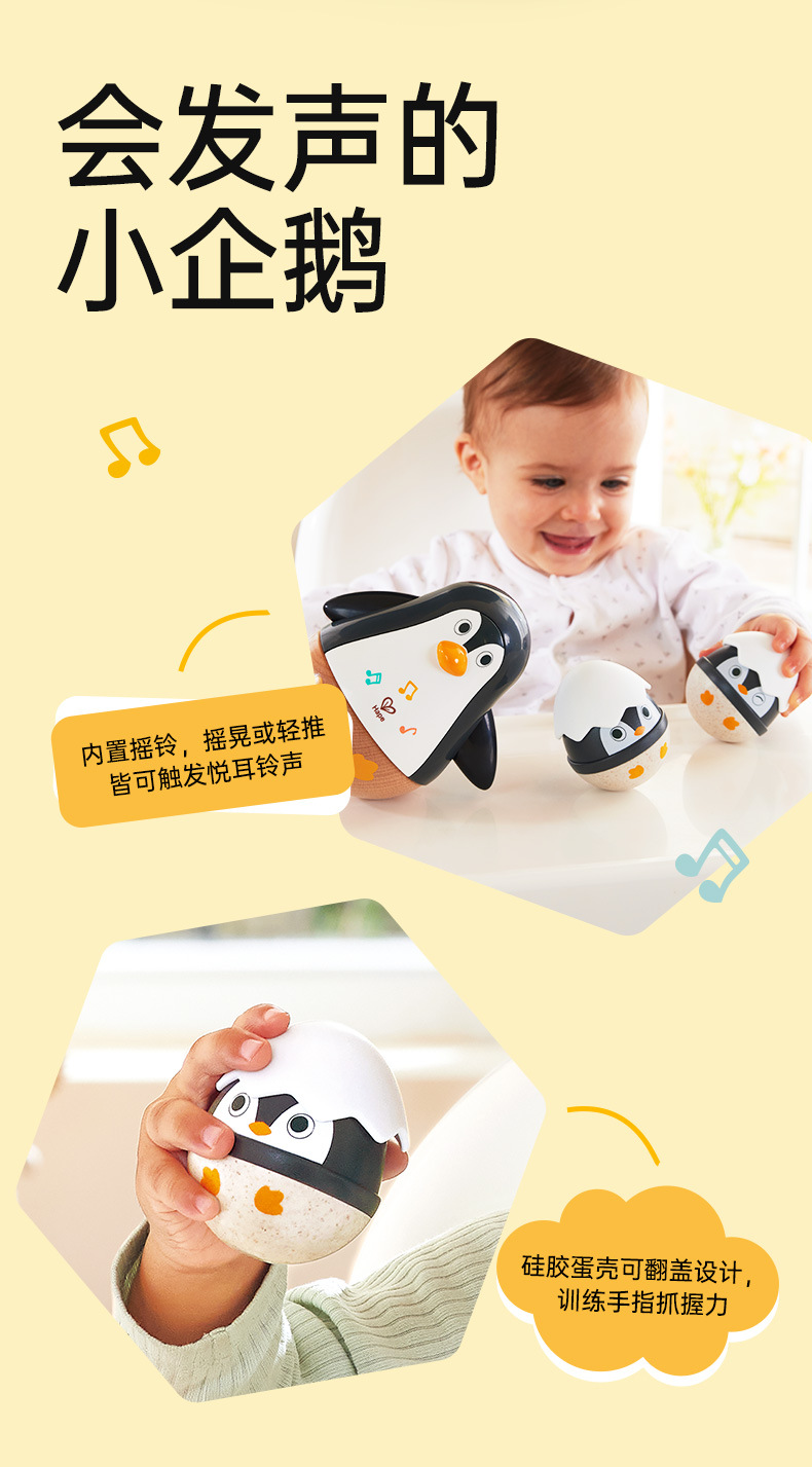 HαPE 음악 펭귄 텀블러 장난감 아기 교육 어린이 음악 상자 전자 드럼 벨 소리