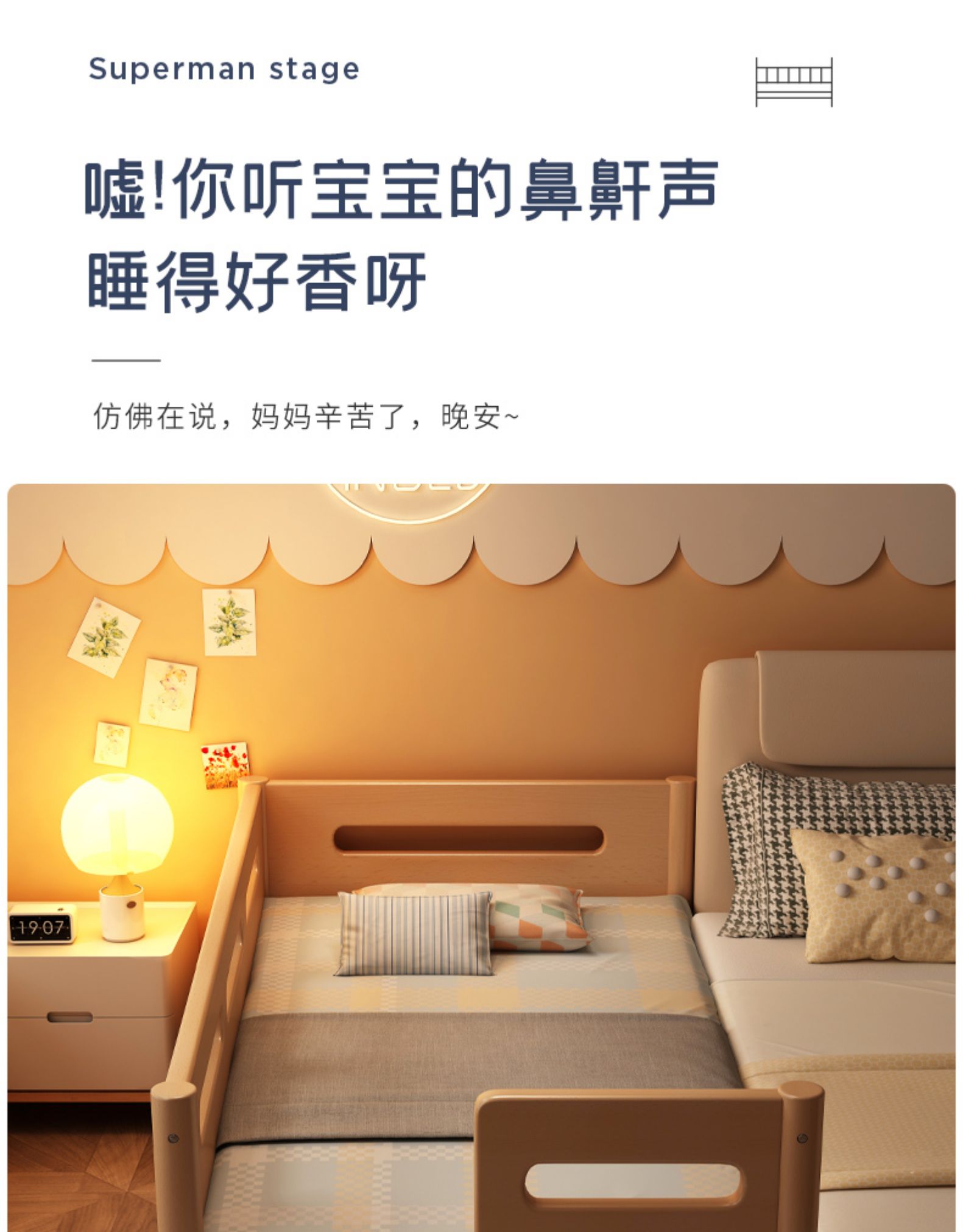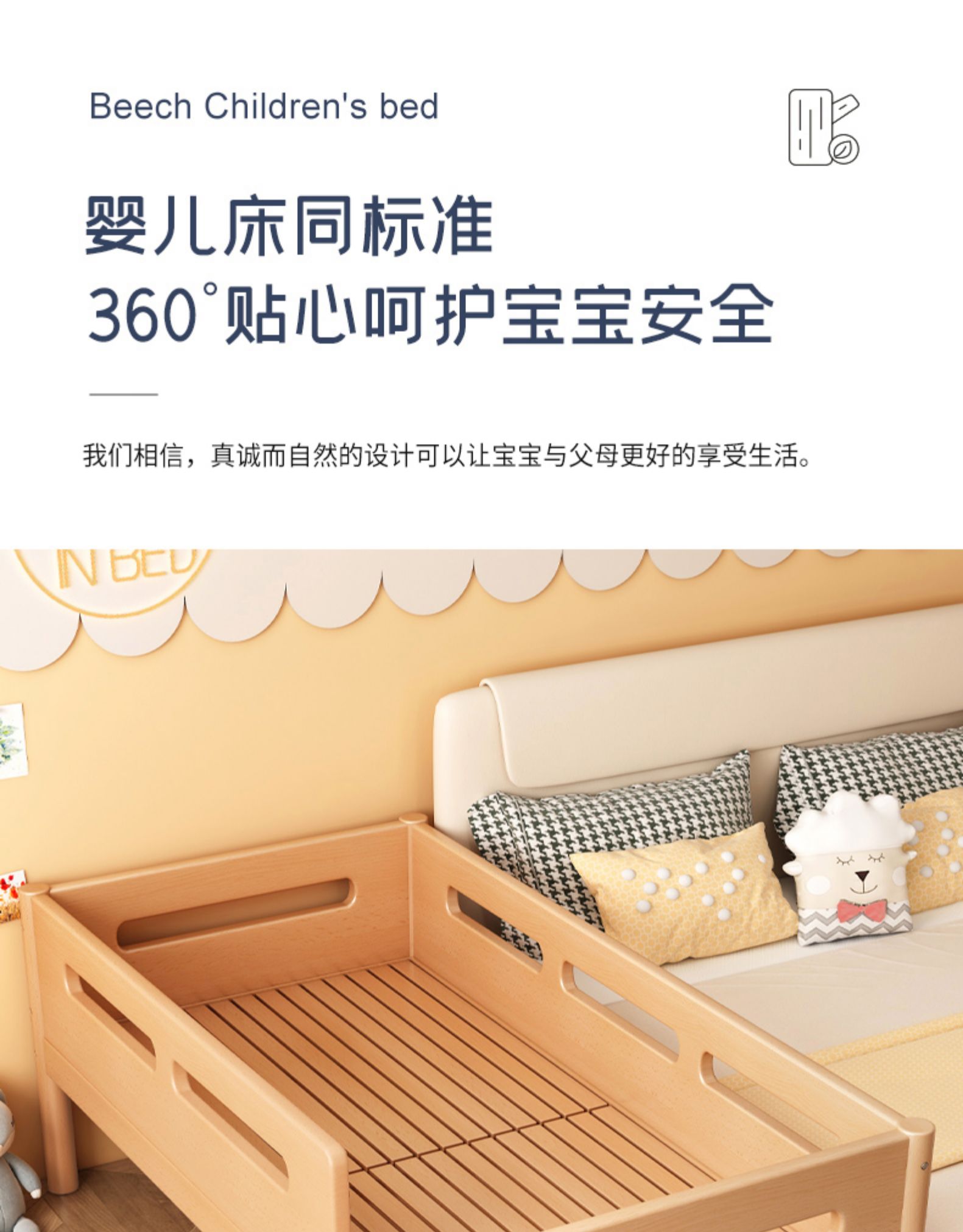 난간이있는 어린이 침대 싱글 보이 너도밤 나무 아기 침대 옆 넓어진 작은 침대 접합 큰 침대스토어 가기