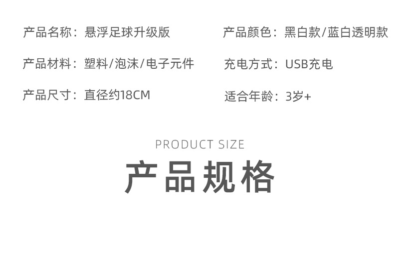 产品名称:悬浮足球带灯光音乐(充电版)
