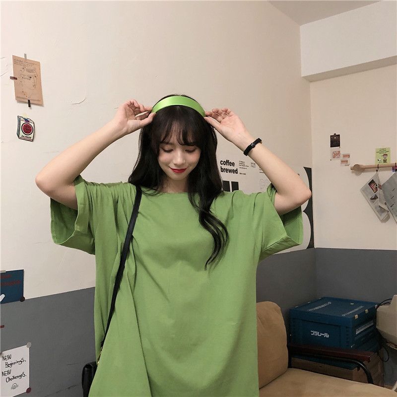 여성용 반팔 탑 캔디 컬러 여름 2025 새로운 솔리드 컬러 bestie 복장 루즈 캐주얼 여성용 반팔 티셔츠