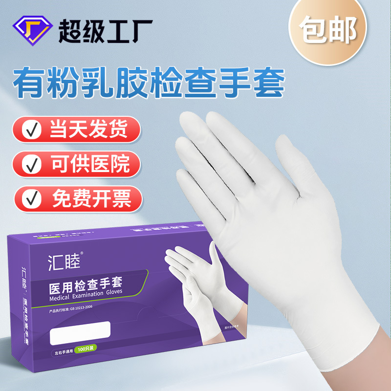 일회용 의료 라텍스 장갑 식품 등급 분말 두꺼운 검사 라텍스 장갑 광택 고무스토어 가기