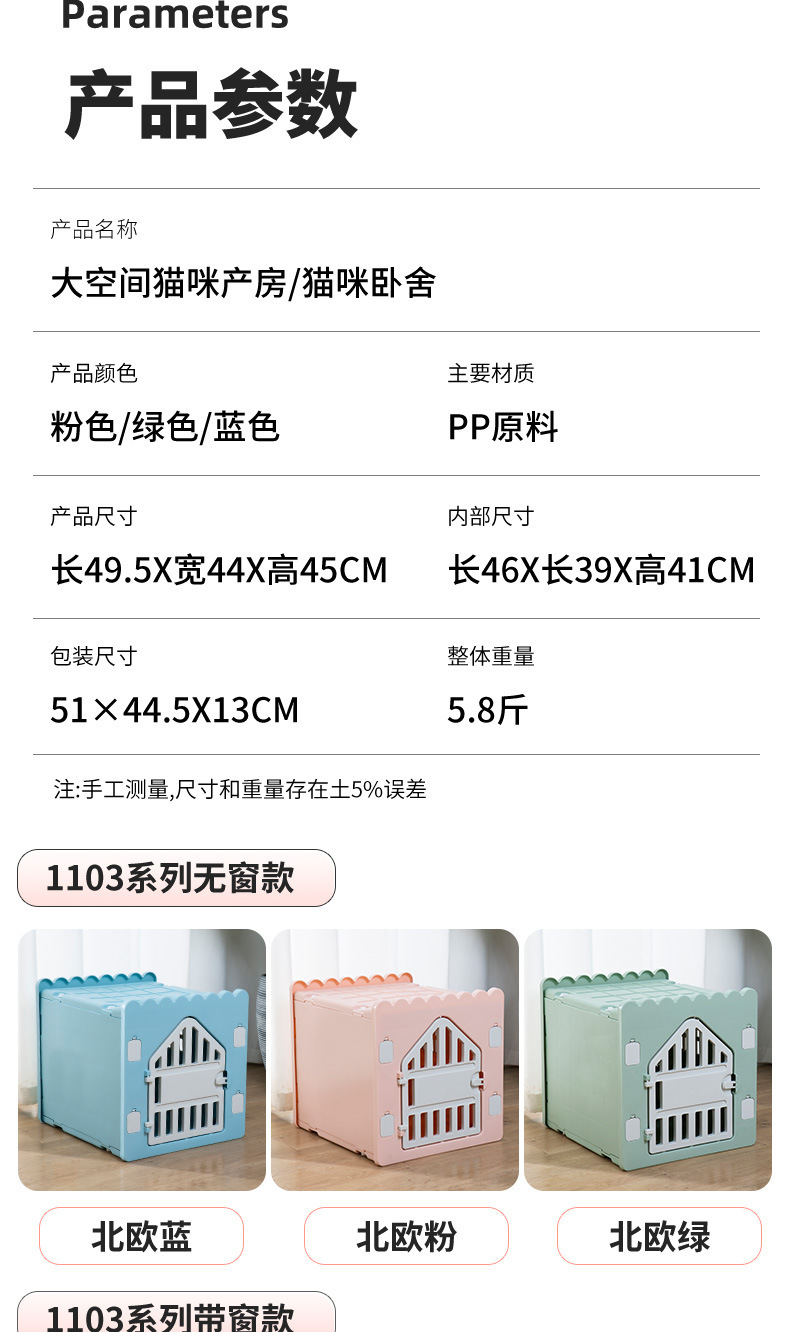 고양이 집 가정용 PP 플라스틱 애완동물 하우스 사계절 사용 가능 방수 안전 고양이 케이지 실내 반폐쇄형 고양이 분만실