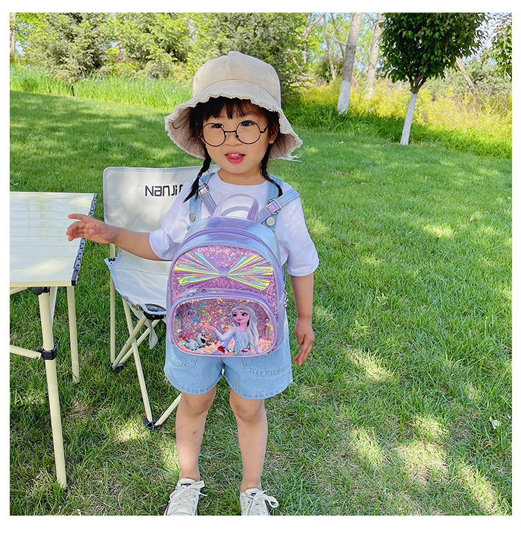 어린이 가방 2025 가을 신상 반짝이 리본 백팩 공주 투명 백팩 유치원 가방 수출용