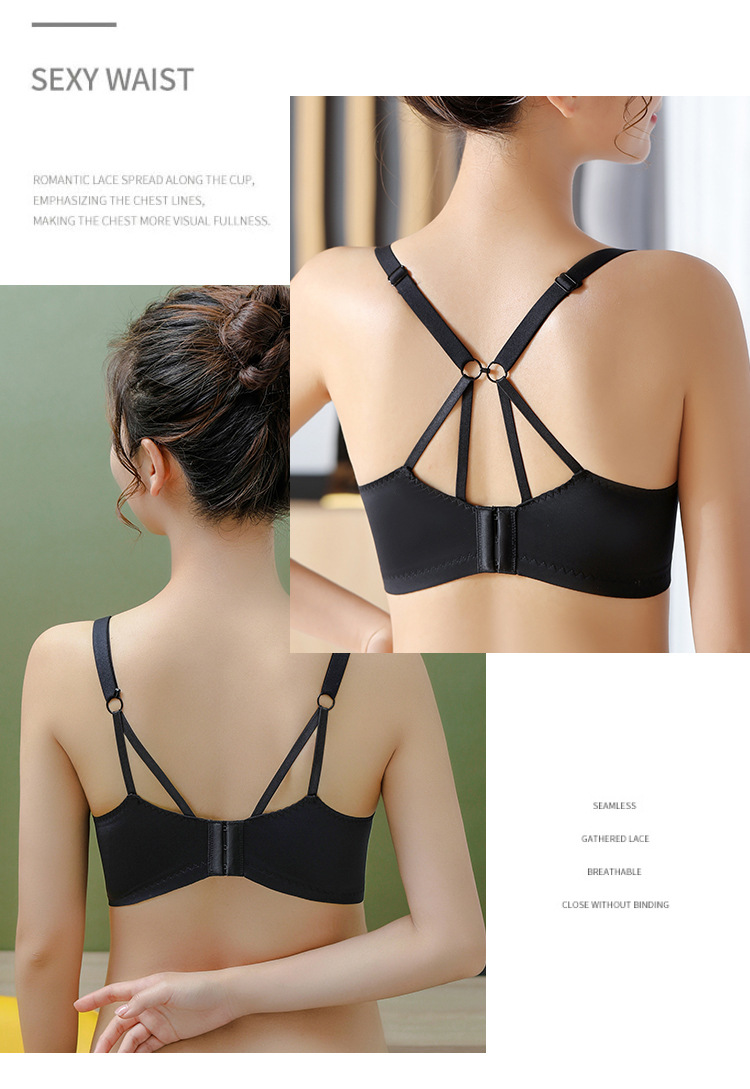 봄 새로운 스타일 속옷 여성용 작은 가슴 개더링 없음 강철 링 조절 가능한 개더링 Auxilis 상단 브래지어 얇은 큰 가슴 작은 브래지어