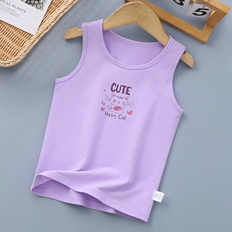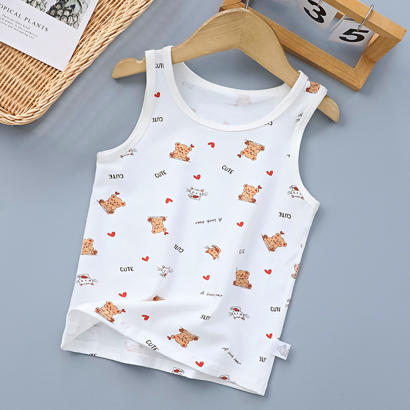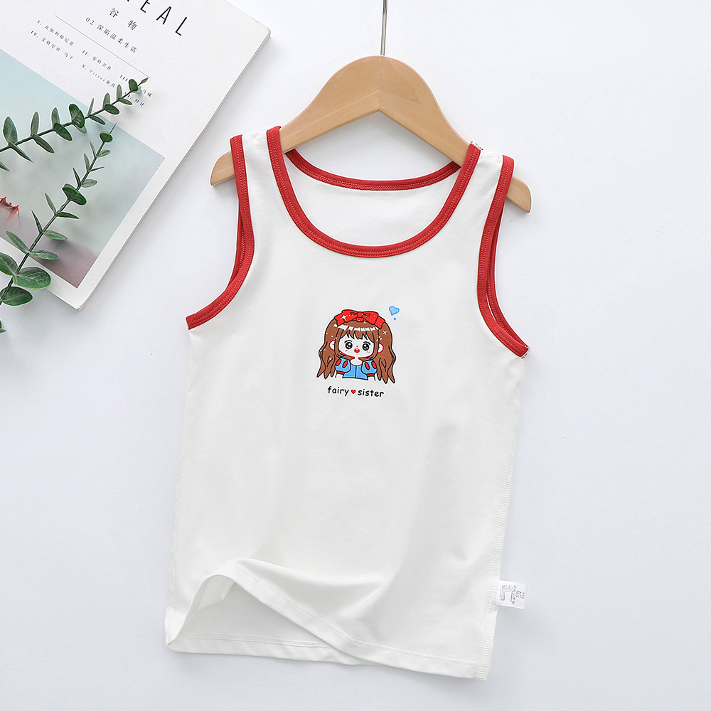 뼈없는 아동복 여름 새로운면 어린이 조끼 스트랩 소년과 소녀 만화 인쇄 둥근 목 셔츠 머리카락의 세대스토어 가기