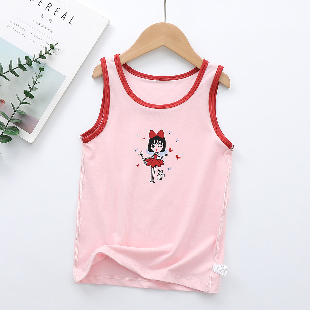 뼈없는 아동복 여름 새로운면 어린이 조끼 스트랩 소년과 소녀 만화 인쇄 둥근 목 셔츠 머리카락의 세대