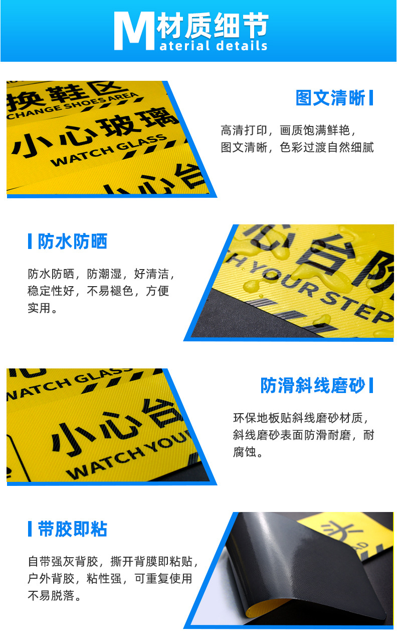 미끄럼 방지, 내마모성, 방수 알루미늄 호일, 조심하세요, 계단 미끄러움, 유리, 금연, 계단 경고, 맞춤형 바닥 스티커스토어 가기