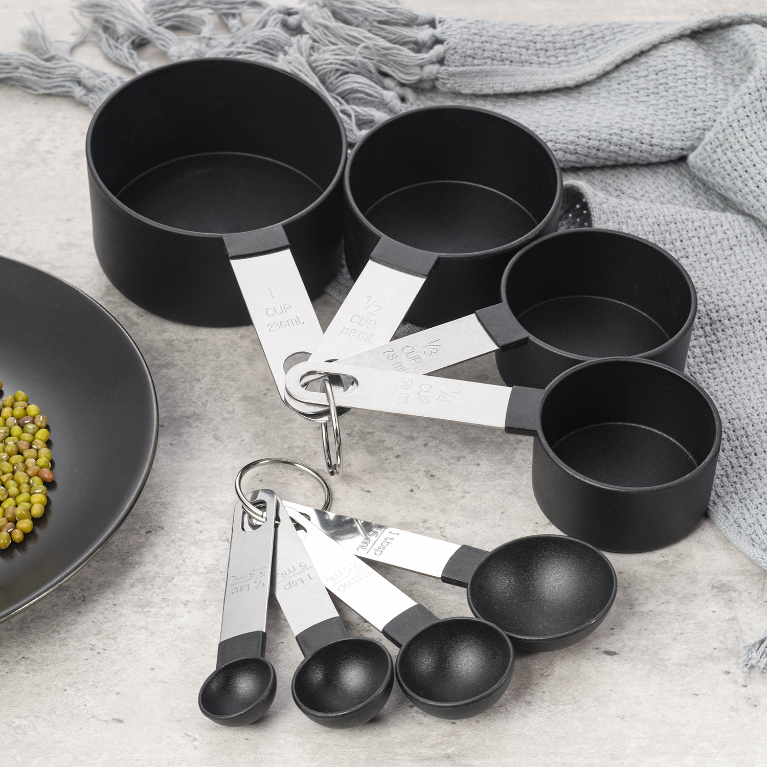 새로운 가정용 스테인레스 스틸 측정 컵 측정 숟가락 8 피스 세트 국경 측정 컵 측정 숟가락 세트 베이킹 도구 스팟 도매스토어 가기
