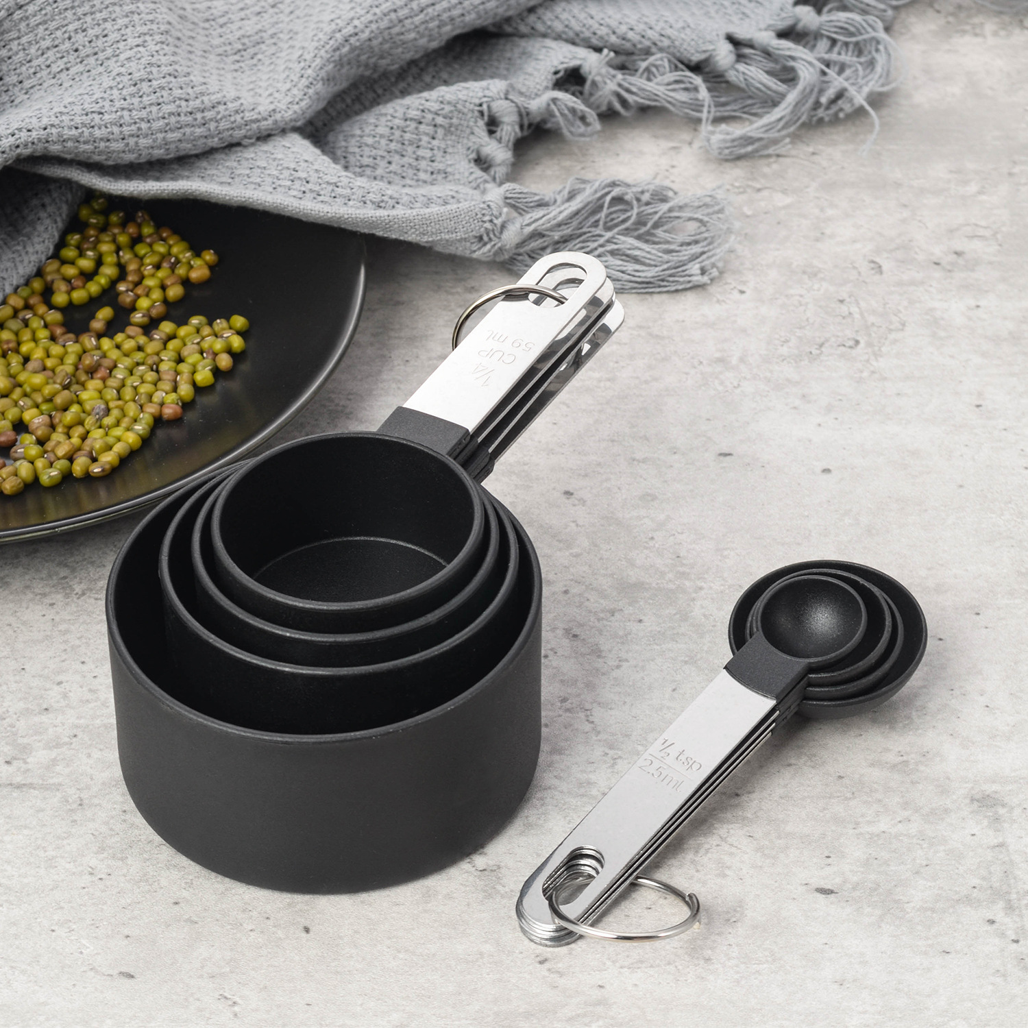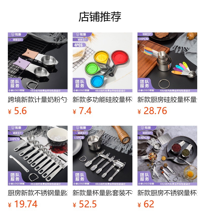 새로운 가정용 스테인레스 스틸 측정 컵 측정 숟가락 8 피스 세트 국경 측정 컵 측정 숟가락 세트 베이킹 도구 스팟 도매