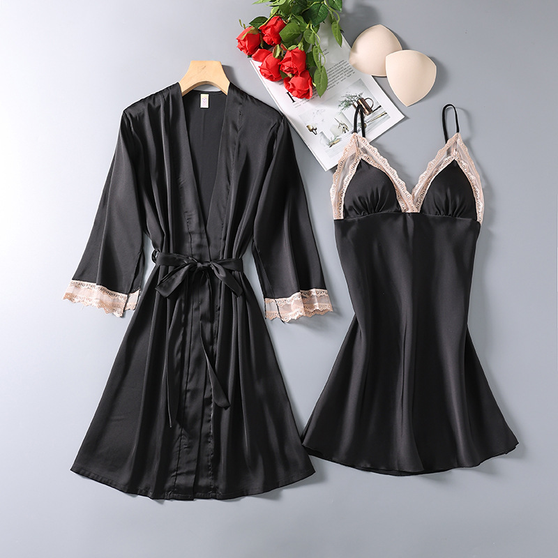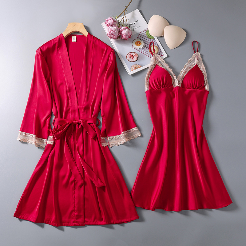섹시한 서스펜더 중공 잠옷 새로운 여성 잠옷 투피스 세트 유방 패드 잠옷 봄과 가을 인터넷 연예인 Douyin 홈 의류