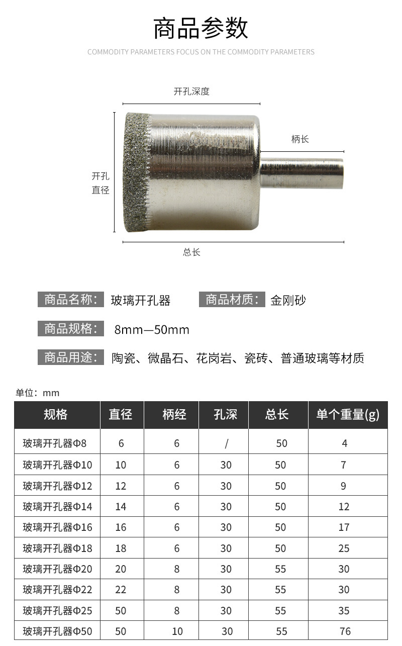 유리 구멍 오프너 세라믹 타일 드릴링 용 드릴 대리석 유리화 타일에 구멍을 뚫습니다 드릴링 헤드 6mm 타일스토어 가기