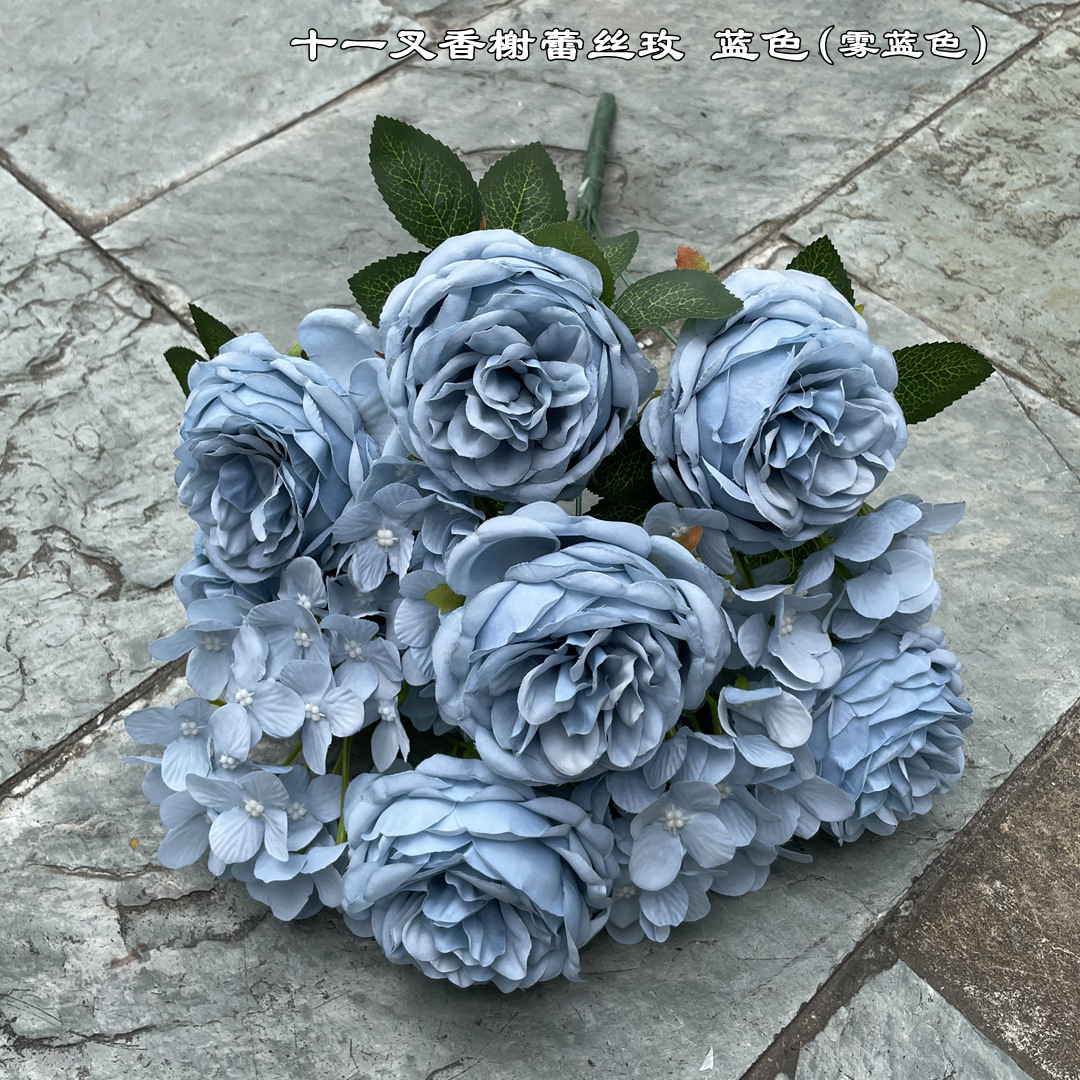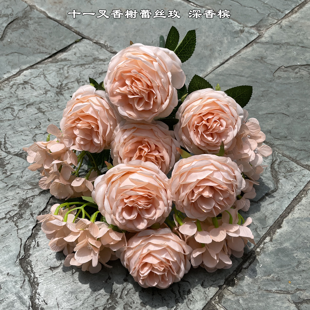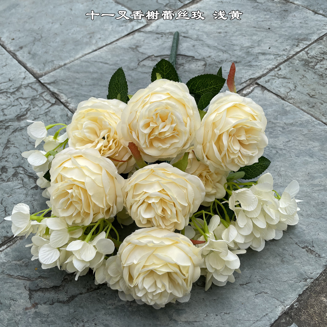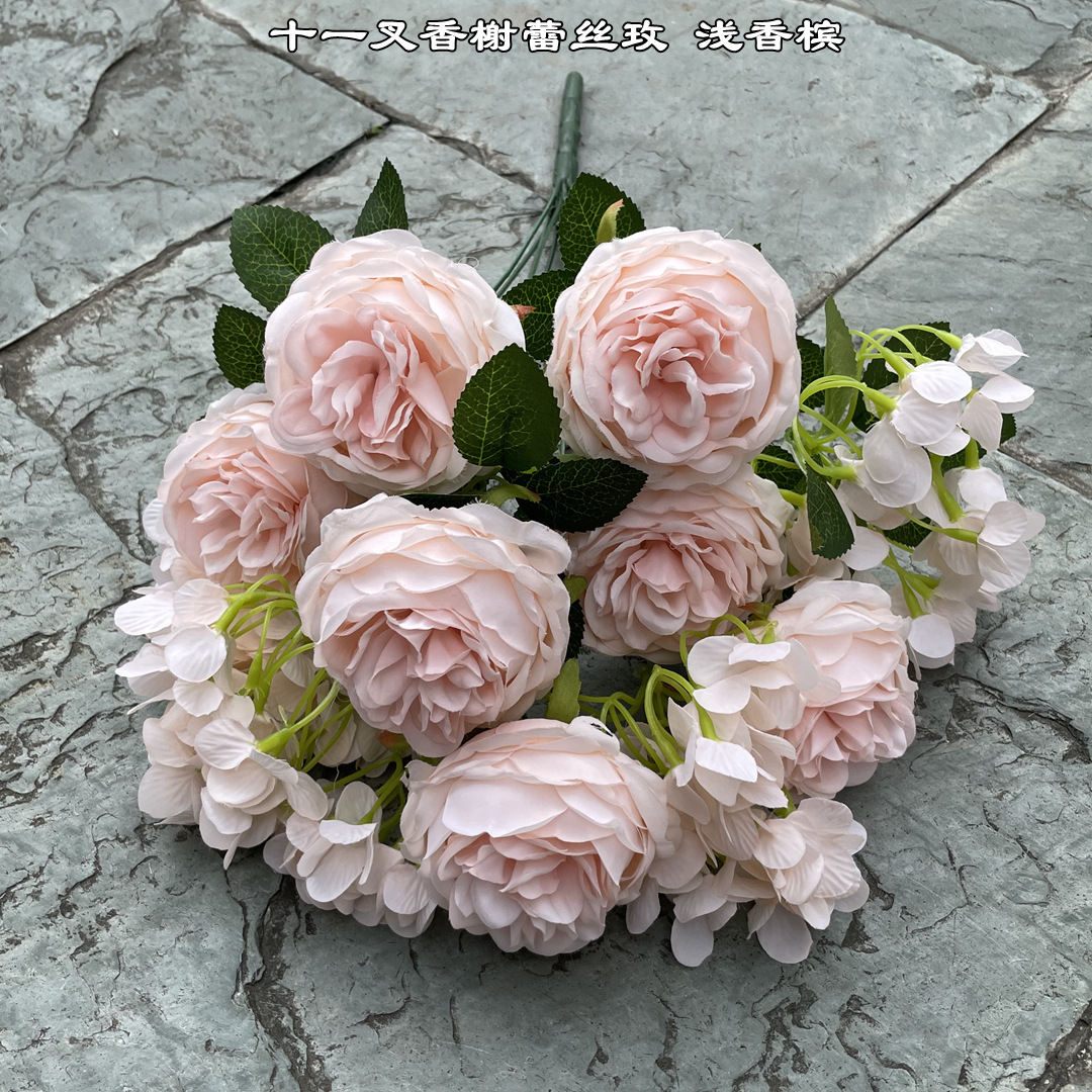 대외 무역 새로운 시뮬레이션 장미 수국 11 포크 챔프 레이스 로즈 웨딩 홀 엔지니어링 장식 가짜 꽃 도매스토어 가기