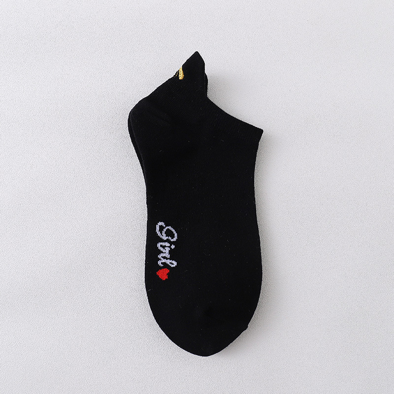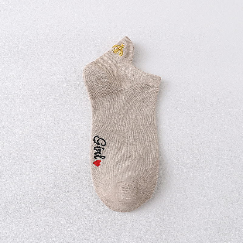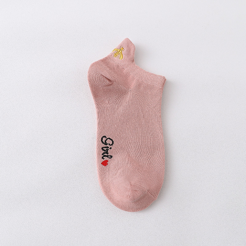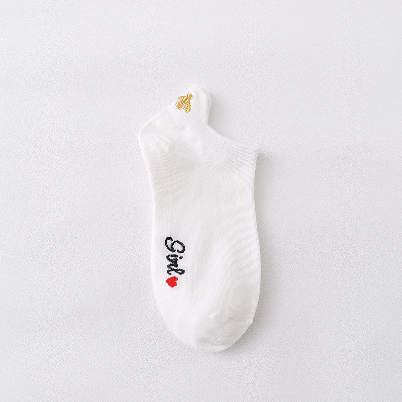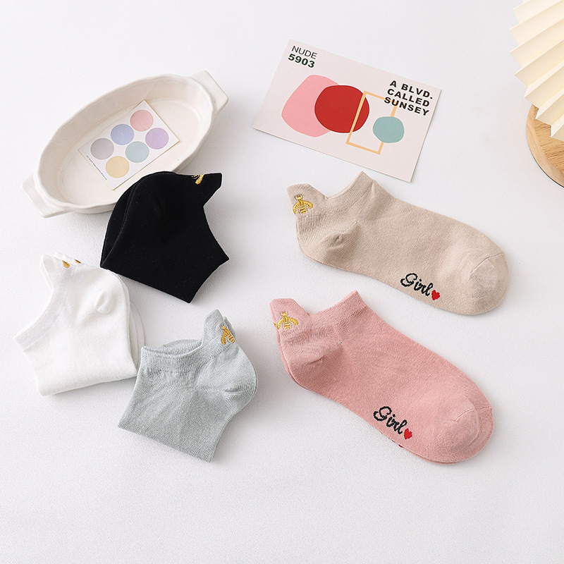 2021 여름 꿀벌 자수 짧은 튜브 면 양말 로우 컷 일본 보트 양말 단색 면 힐 프리 양말